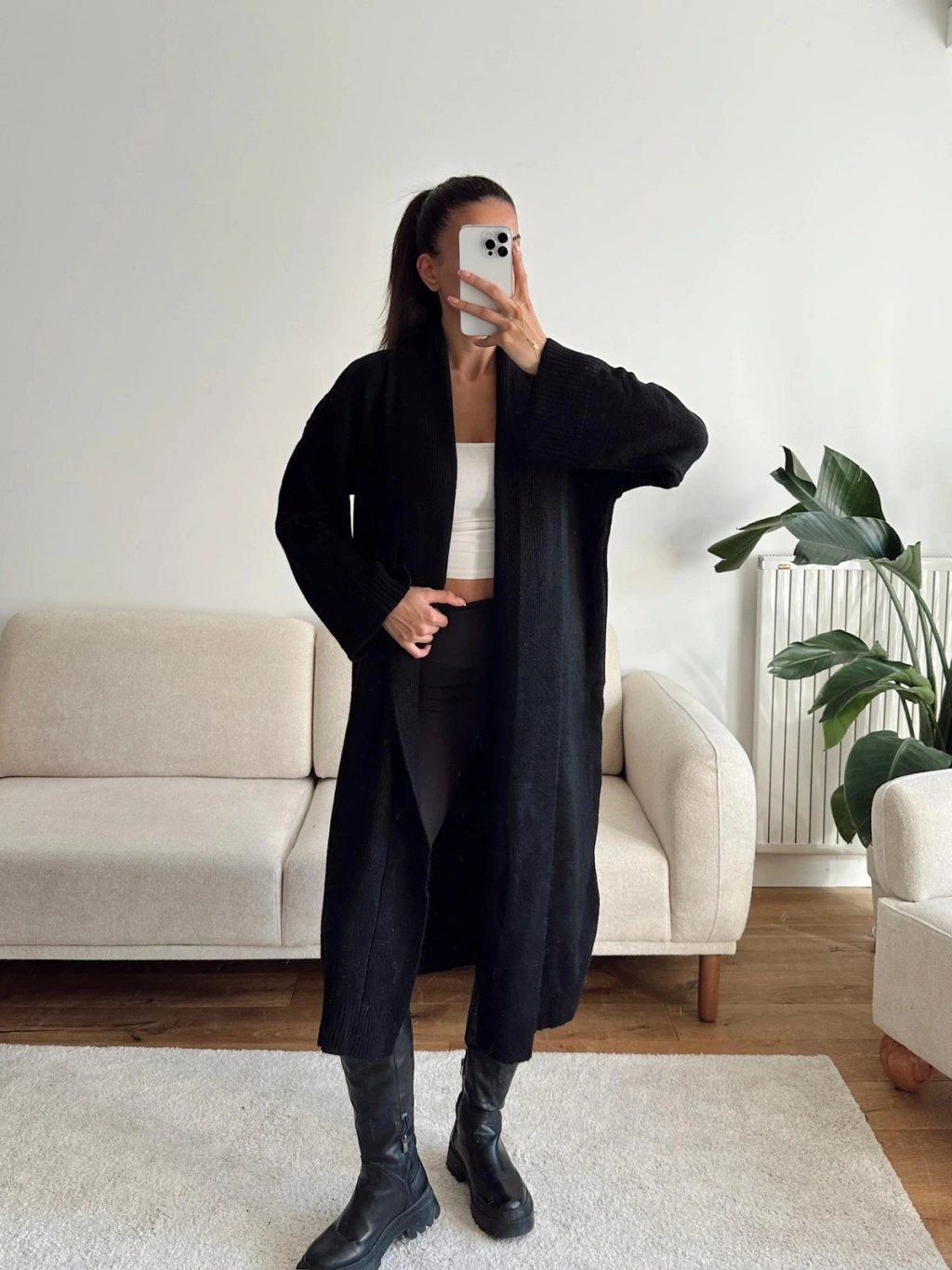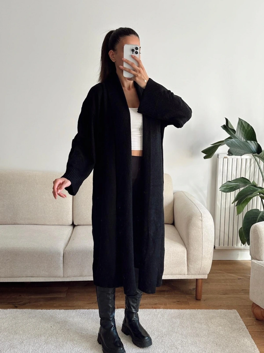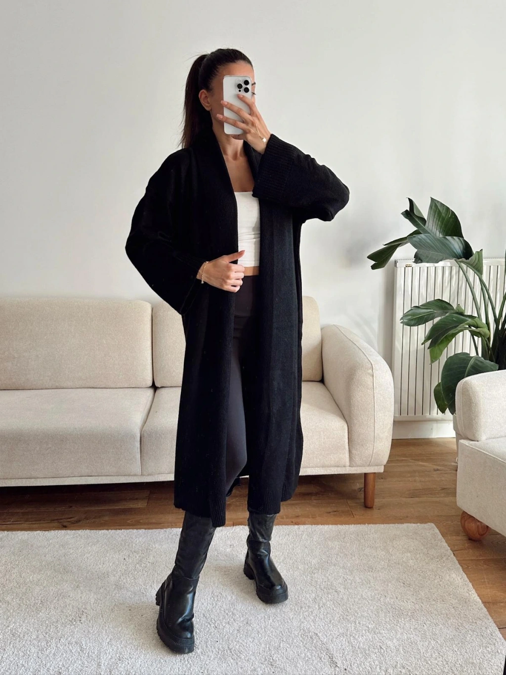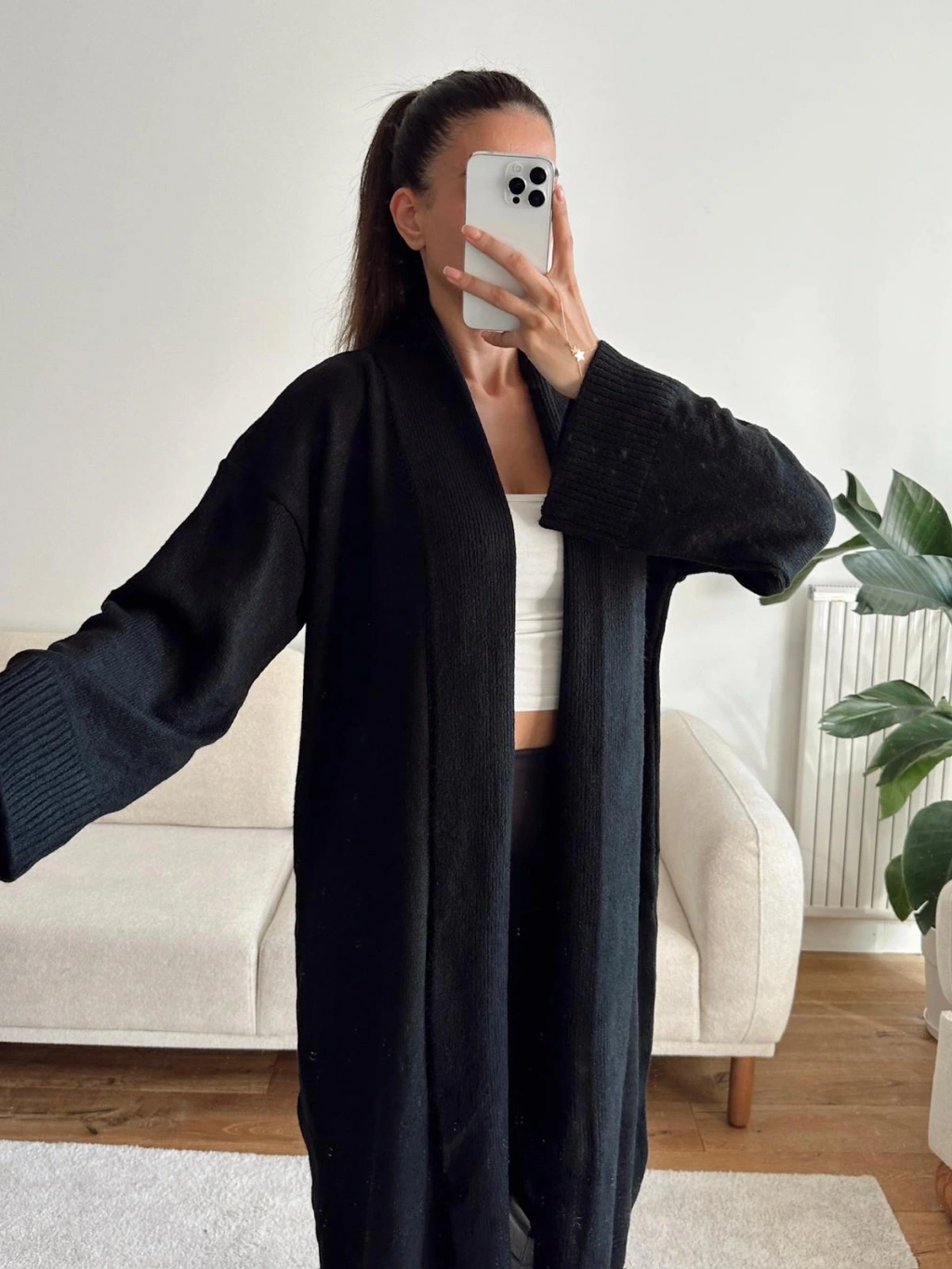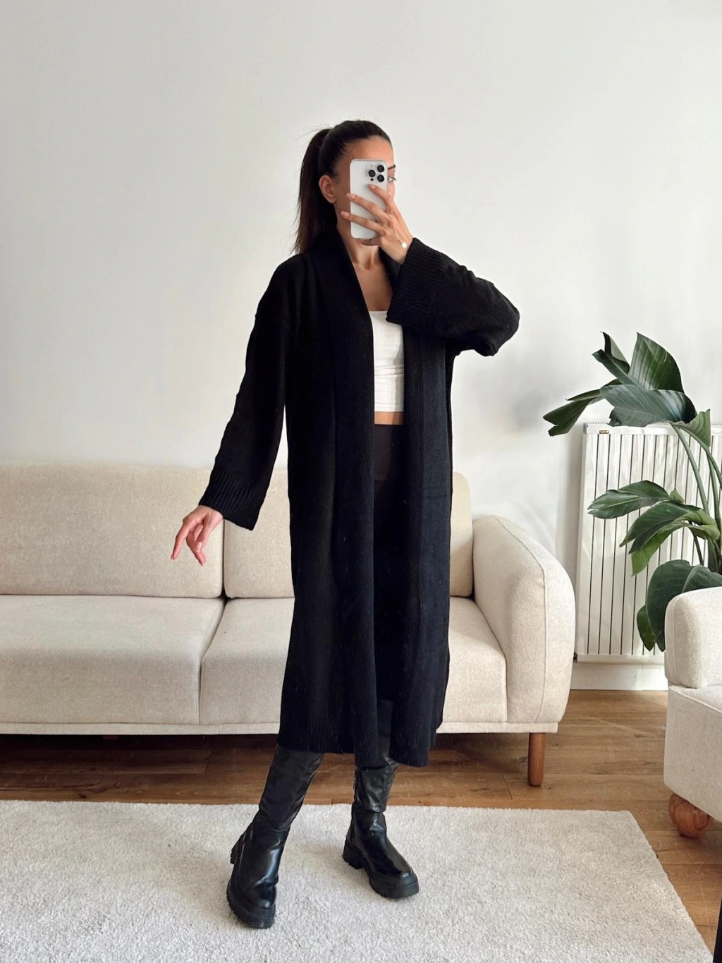 Şal Yaka Uzun Triko Hırka - SİYAH