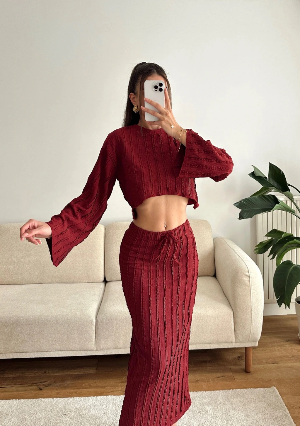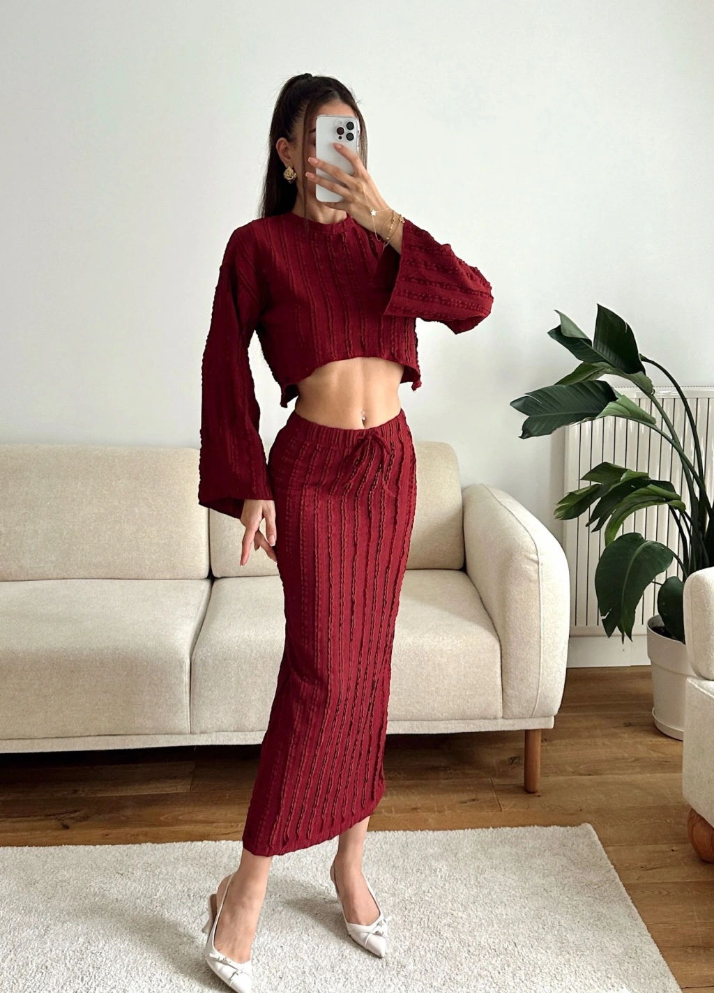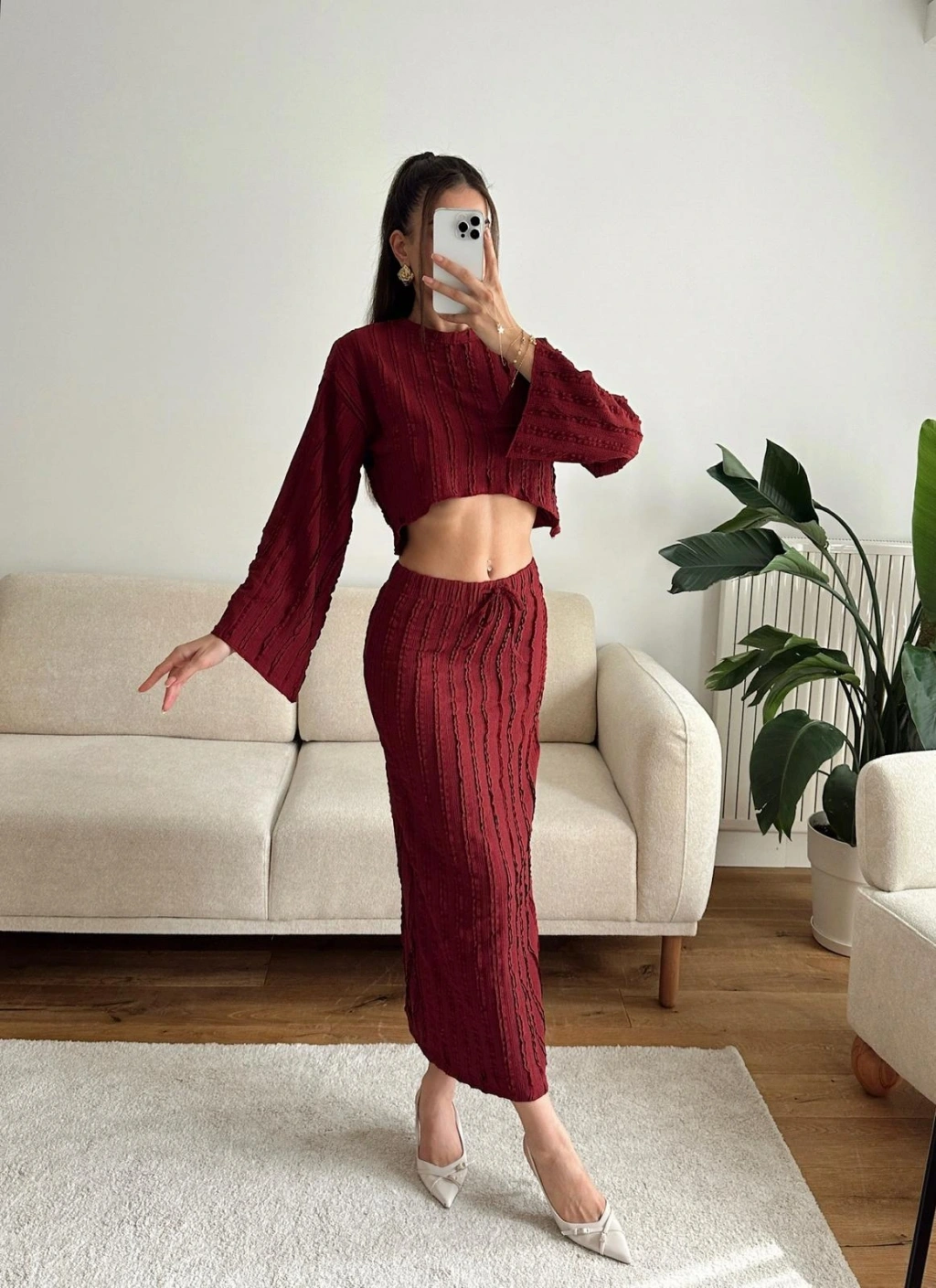 Salaş Crop & Etekli Takım - BORDO