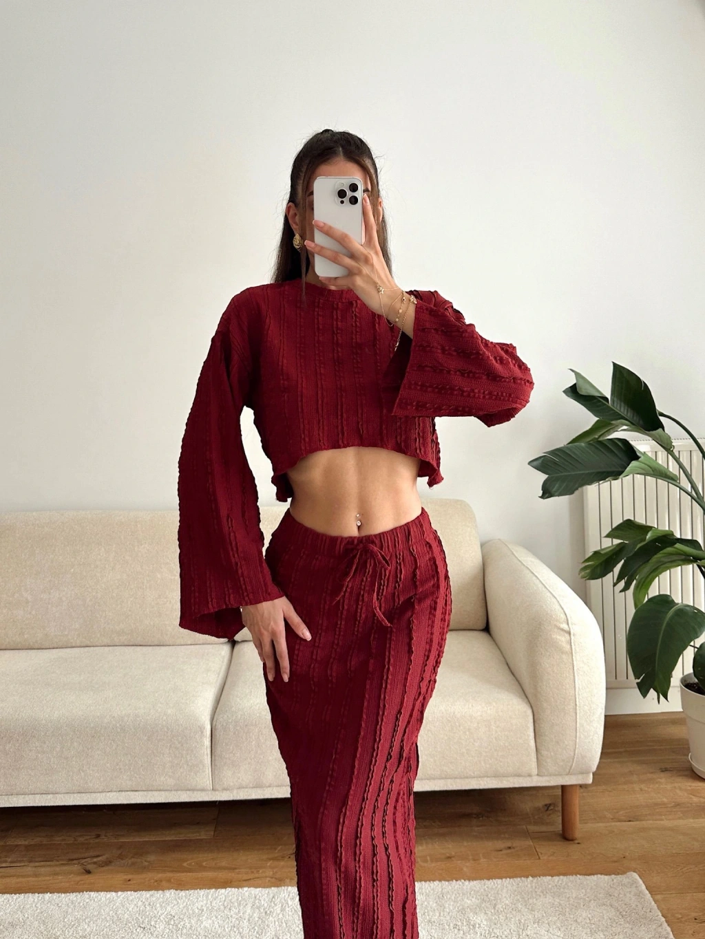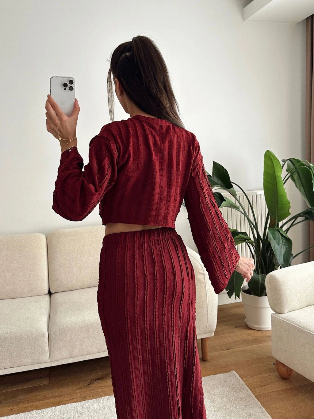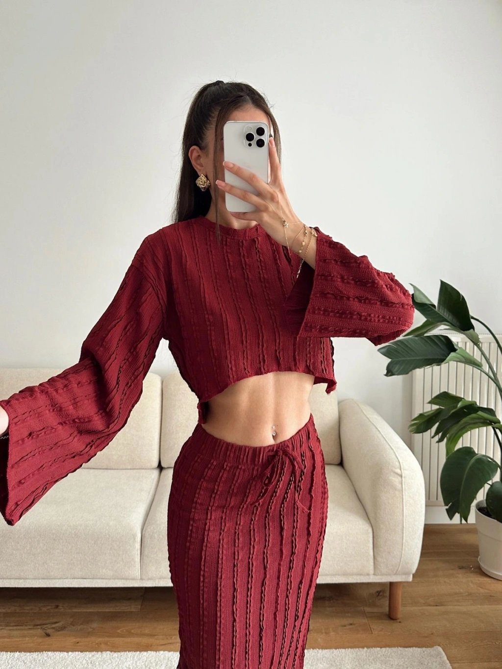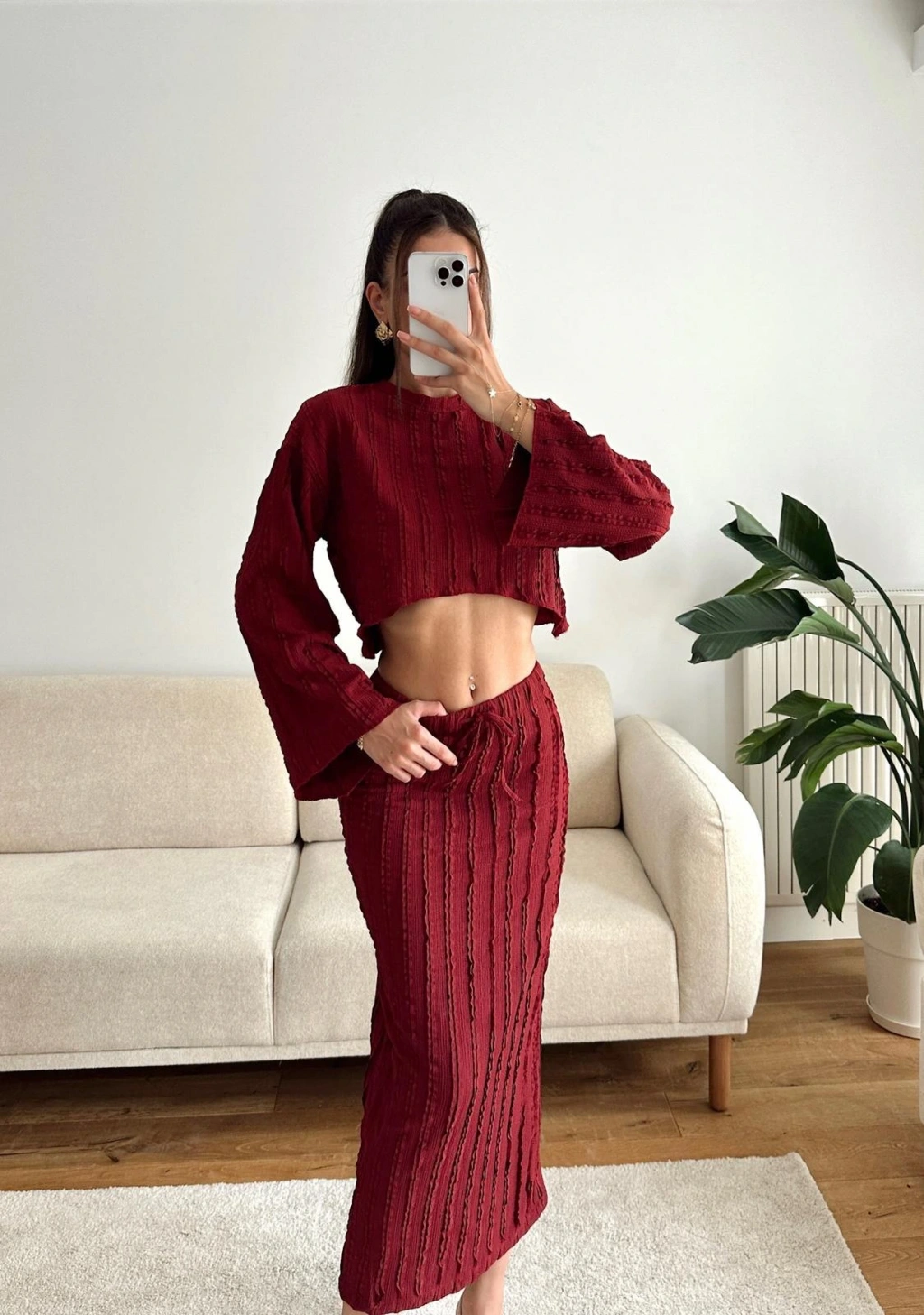 Salaş Crop & Etekli Takım - BORDO