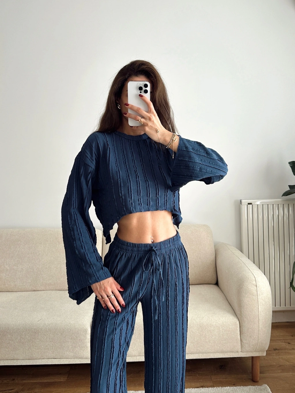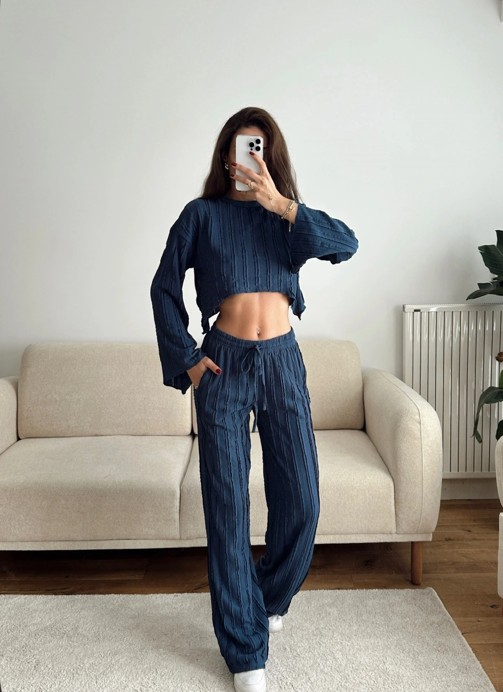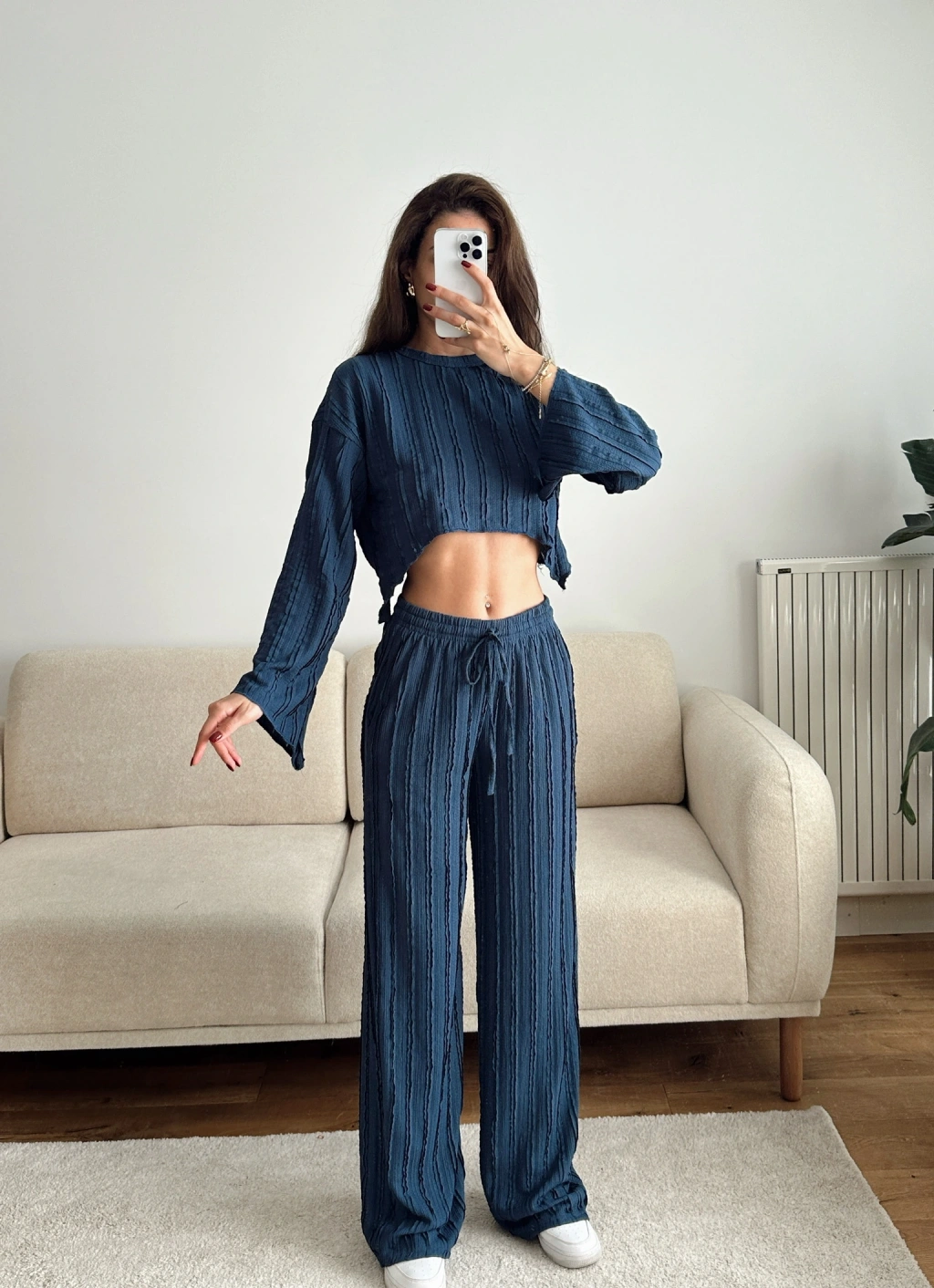 Salaş Crop & Pantolon Takım - LACİVERT