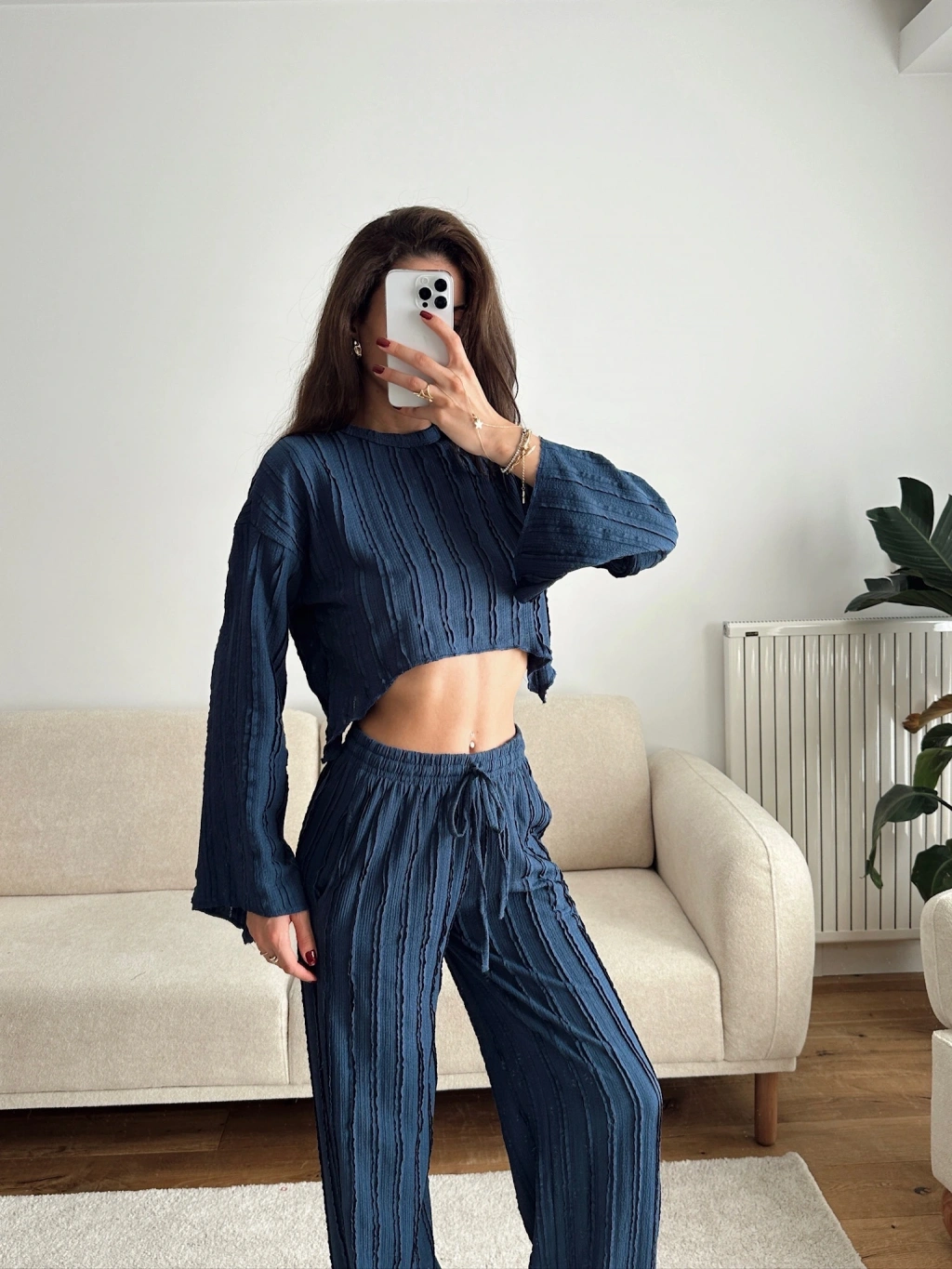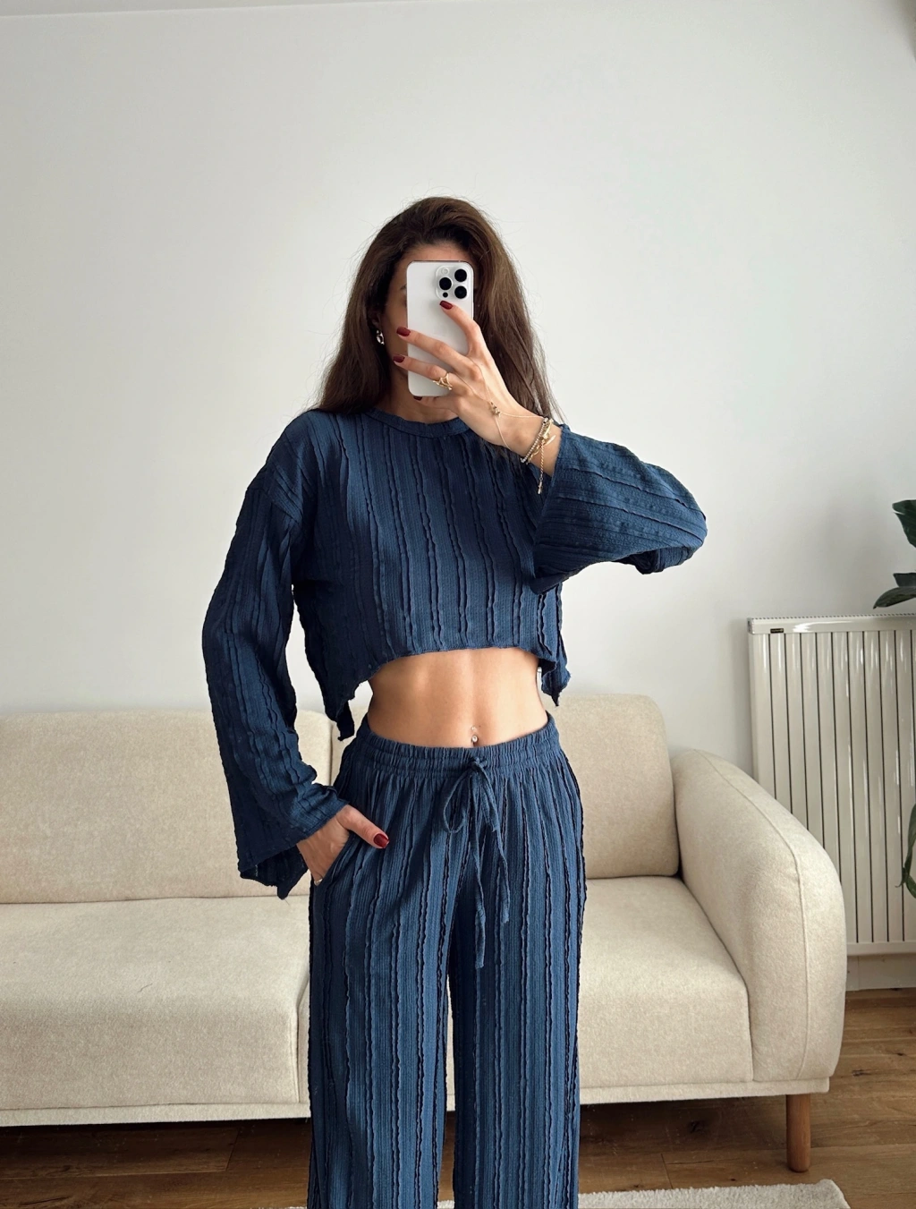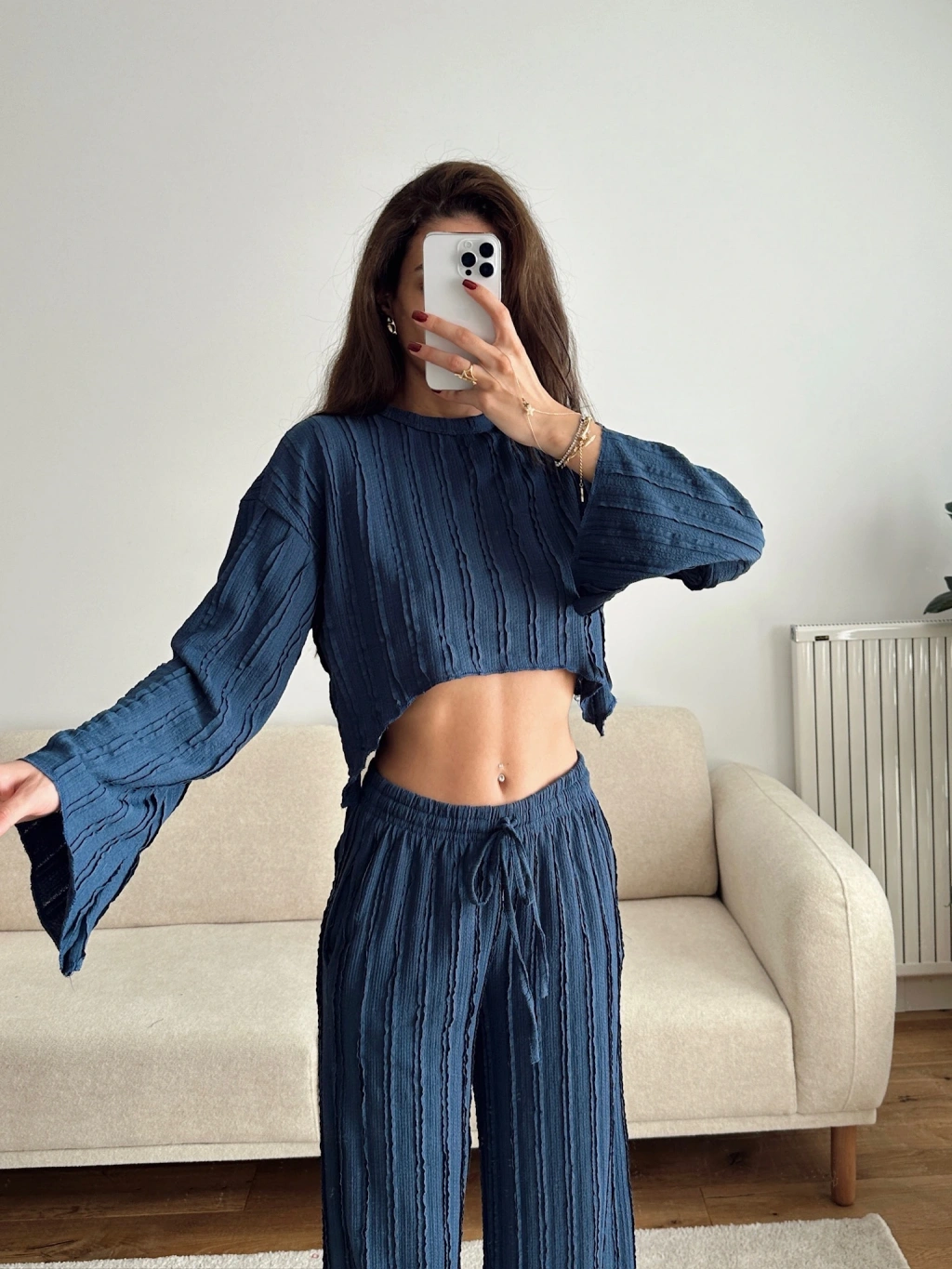 Salaş Crop & Pantolon Takım - LACİVERT