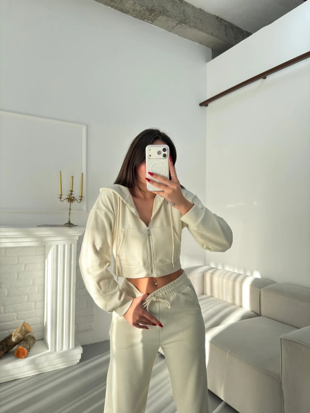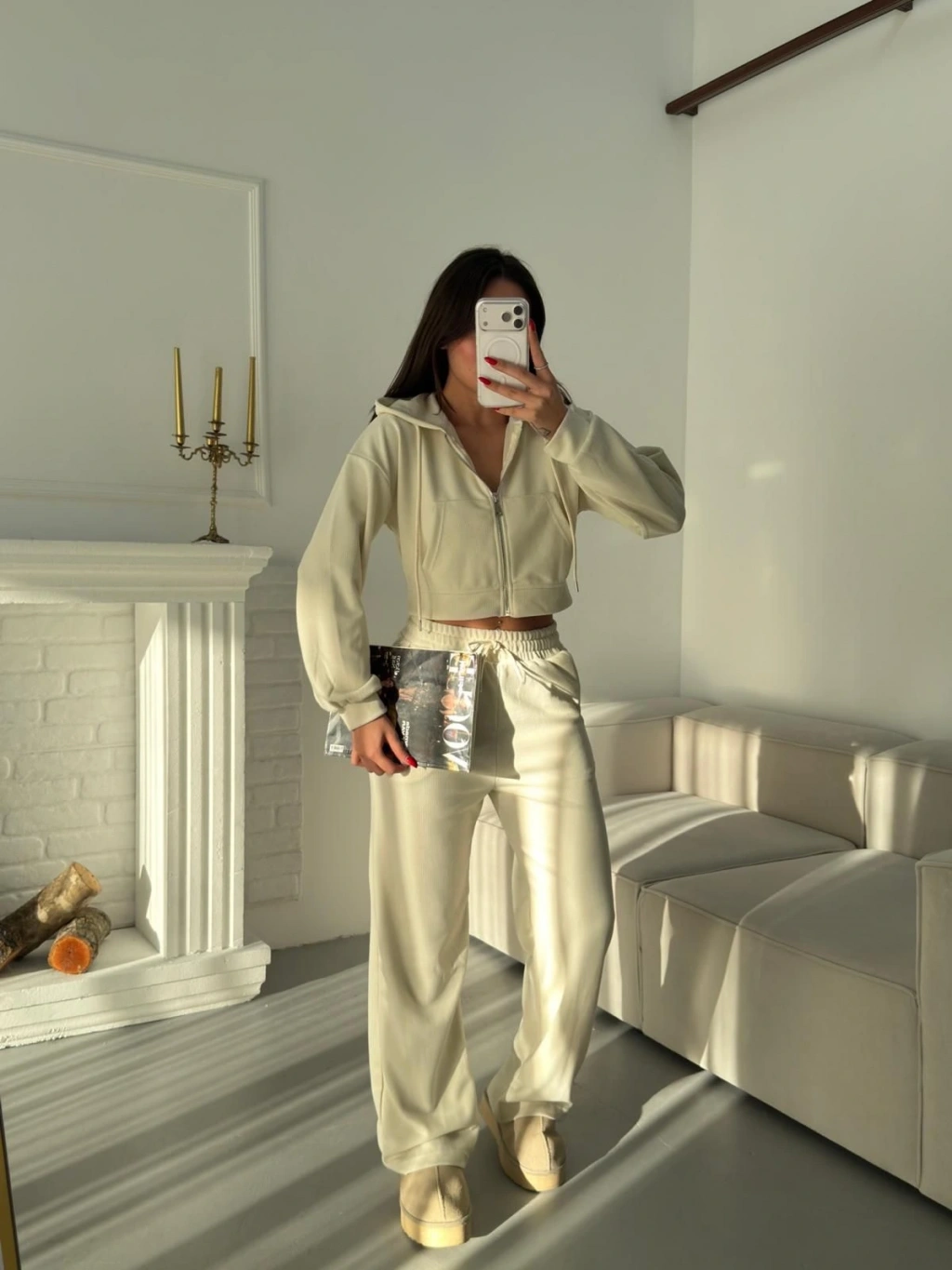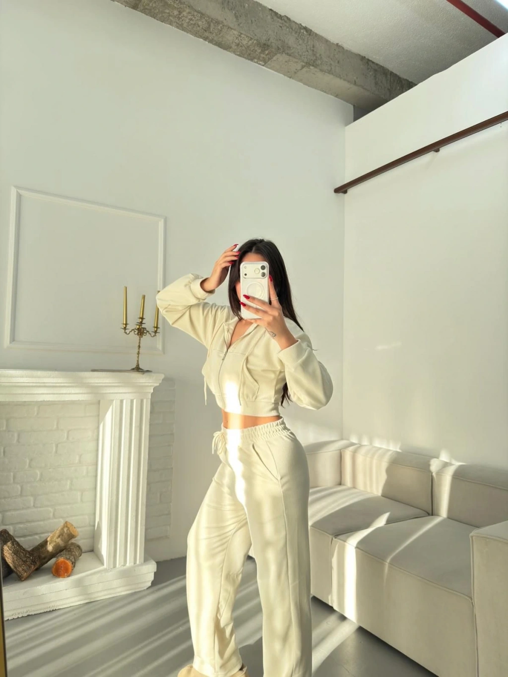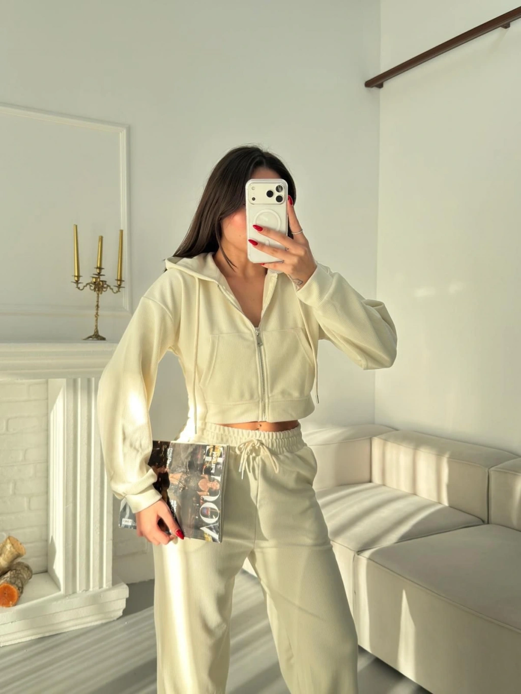 Selanik Crop Hırkalı Takım - EKRU