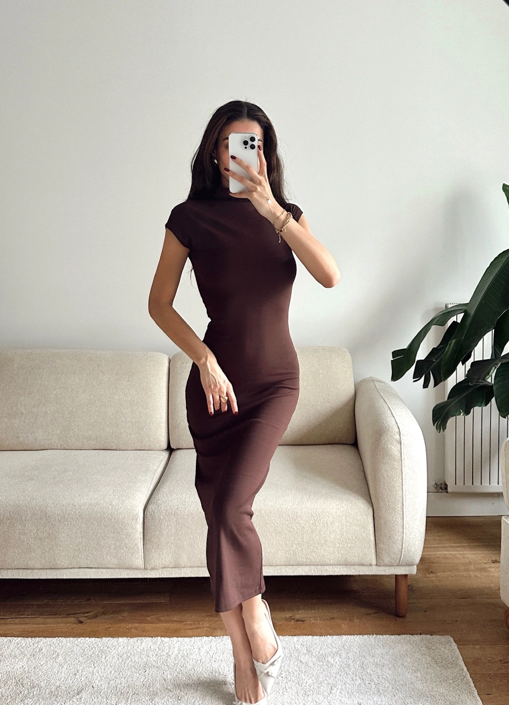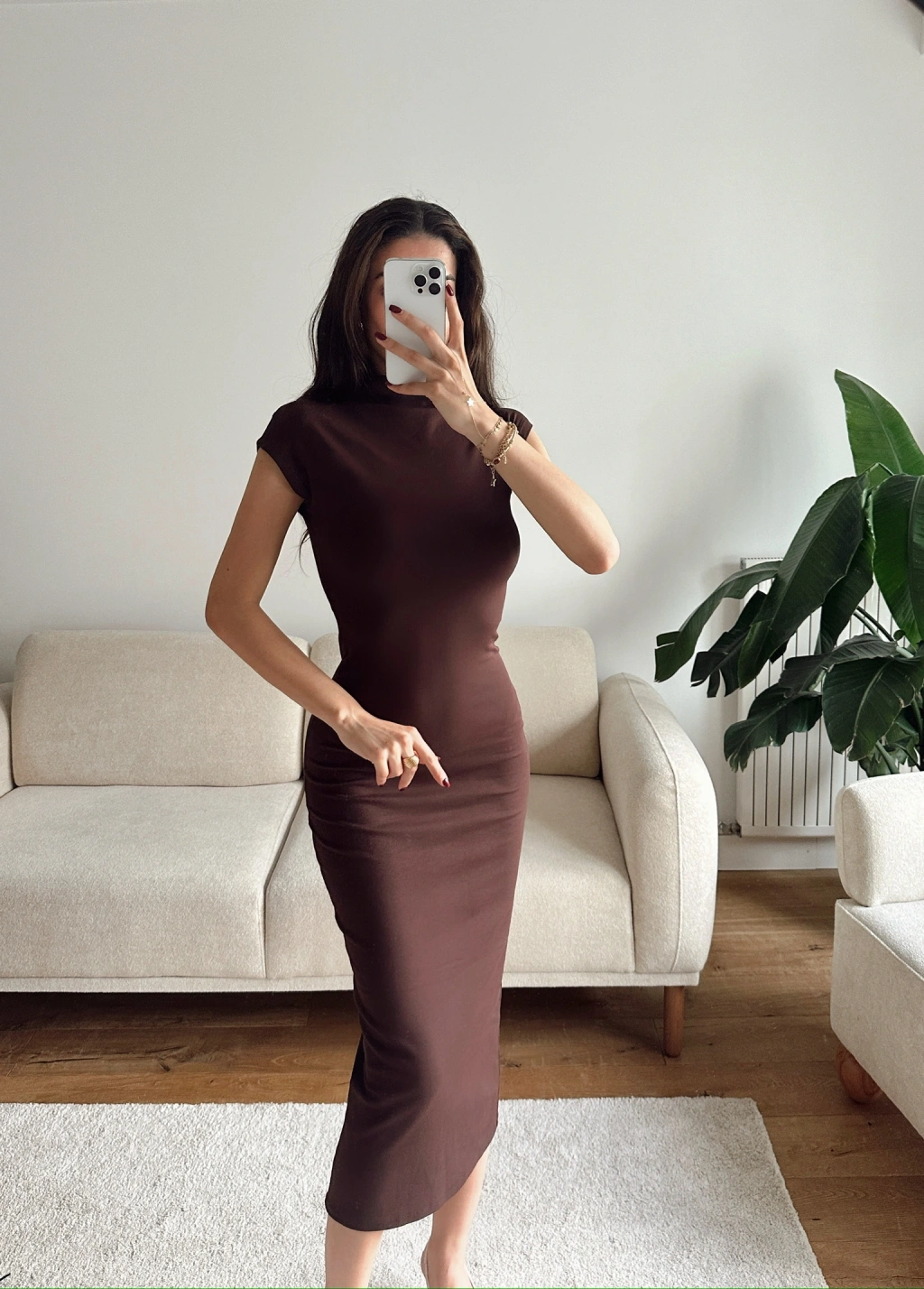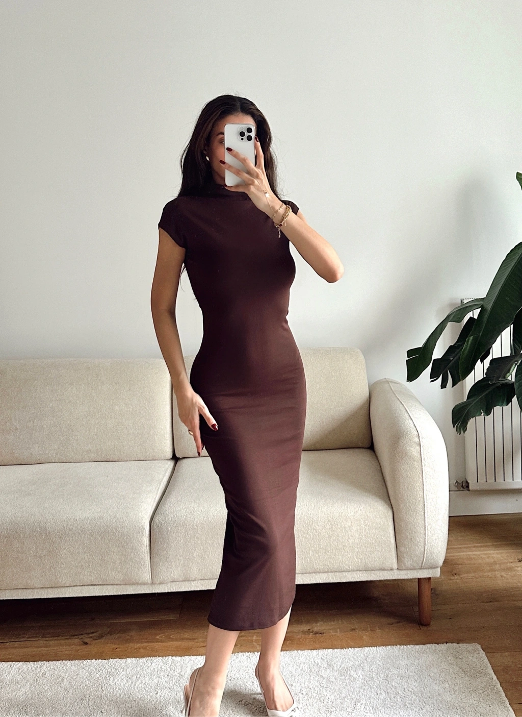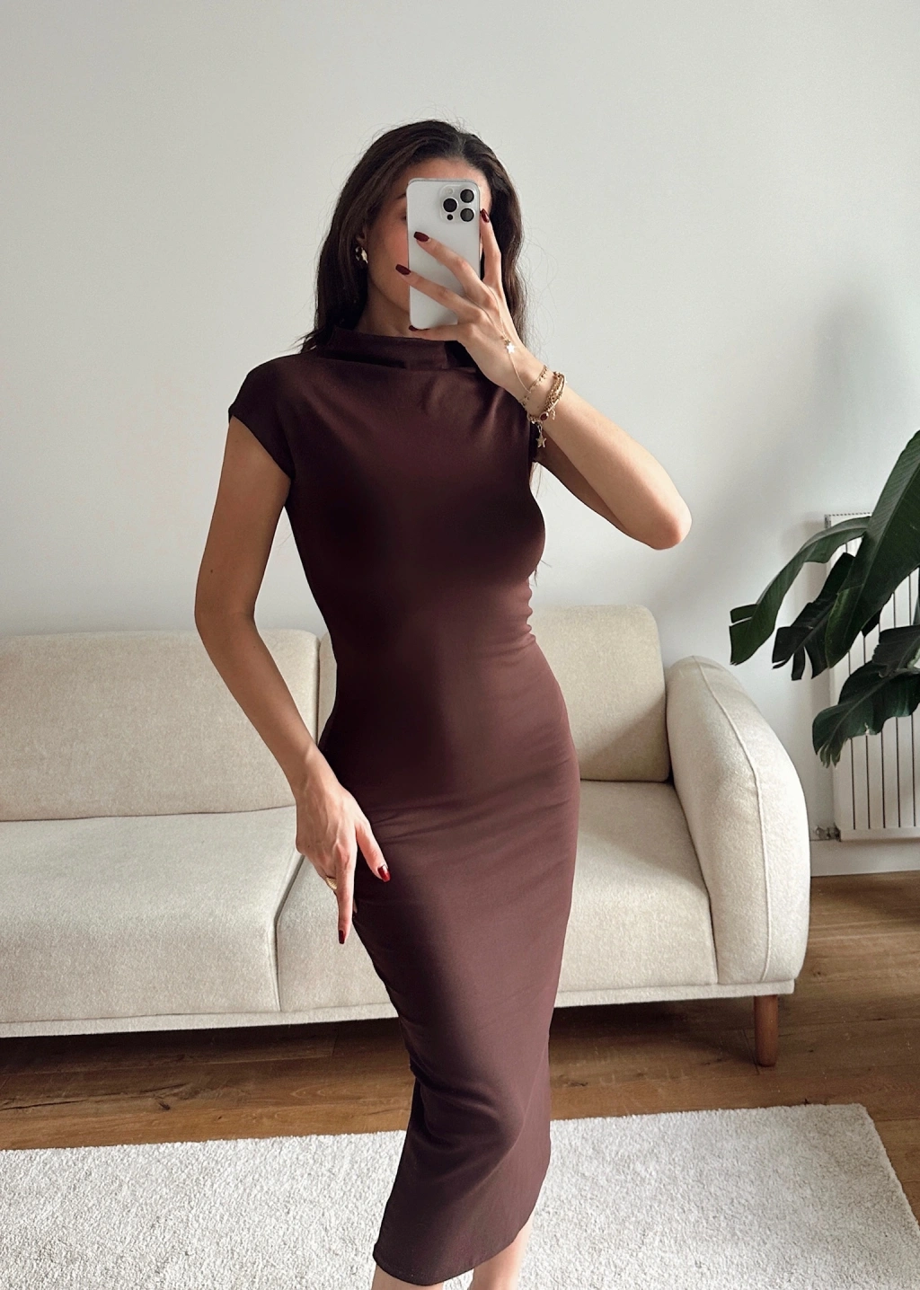 Sıfır Kol Balıkçı Elbise - KAHVE