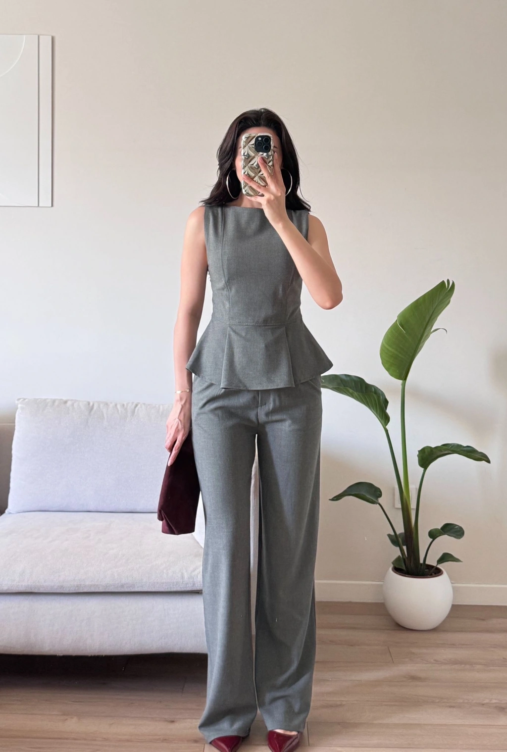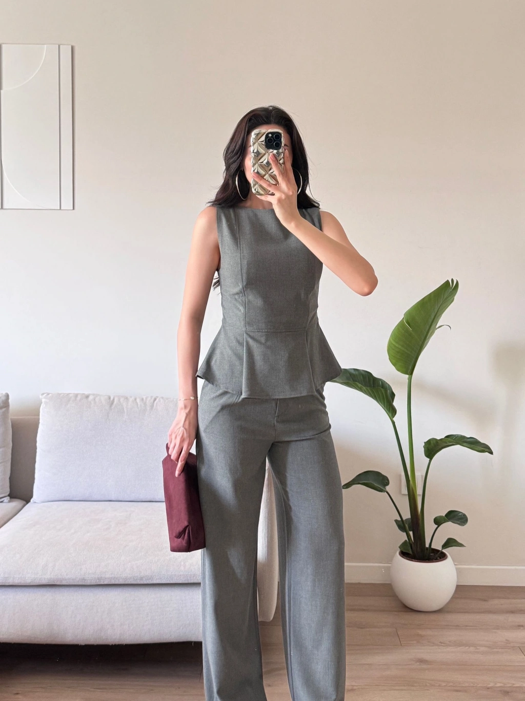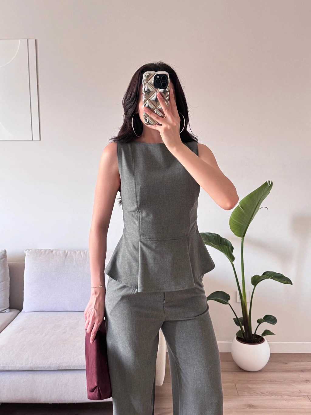 Sıfır Kol Belden Oturtmalı Takım - GRİ