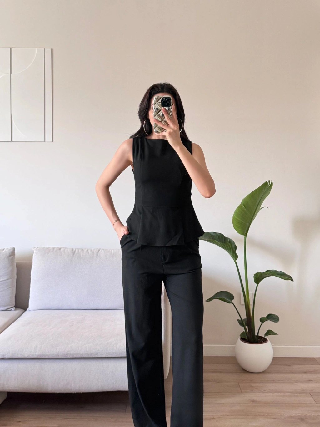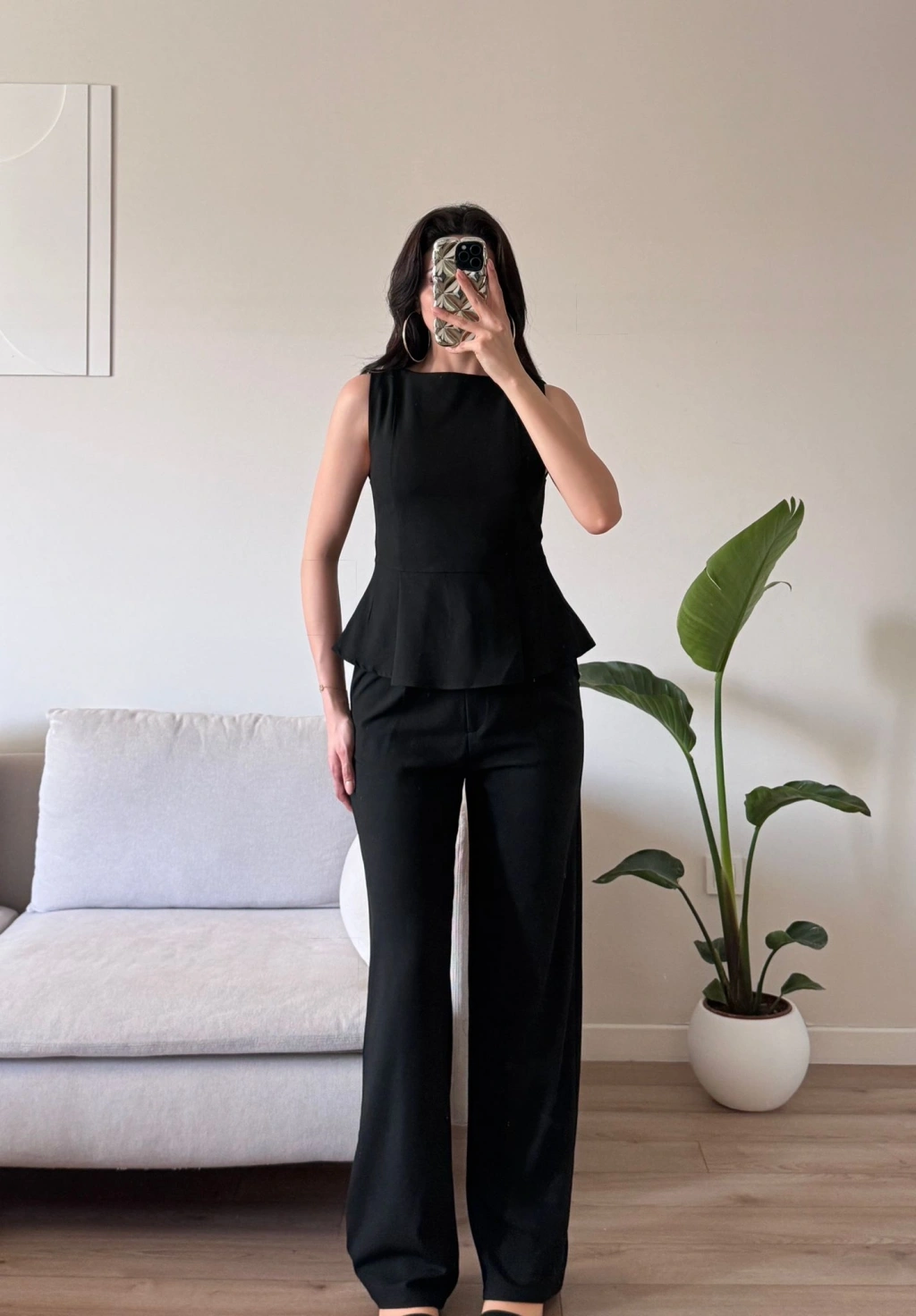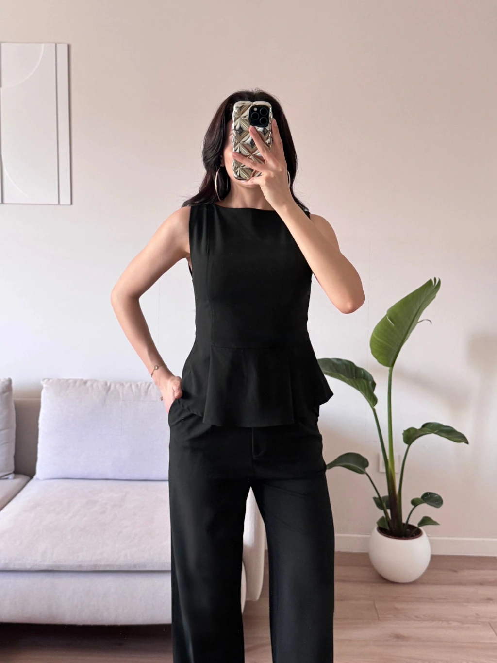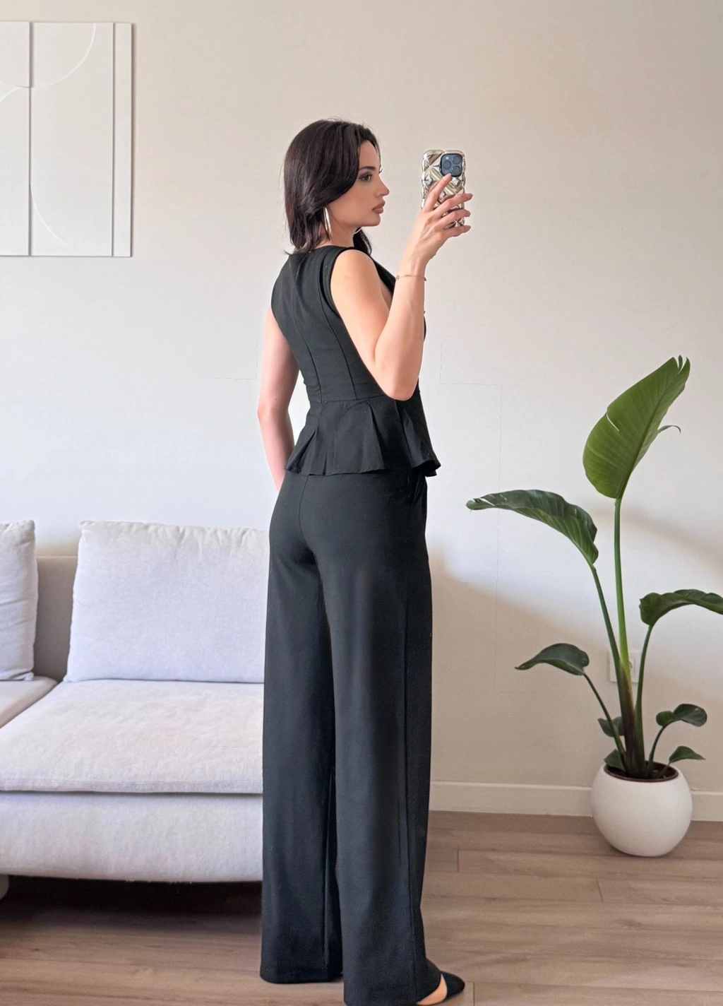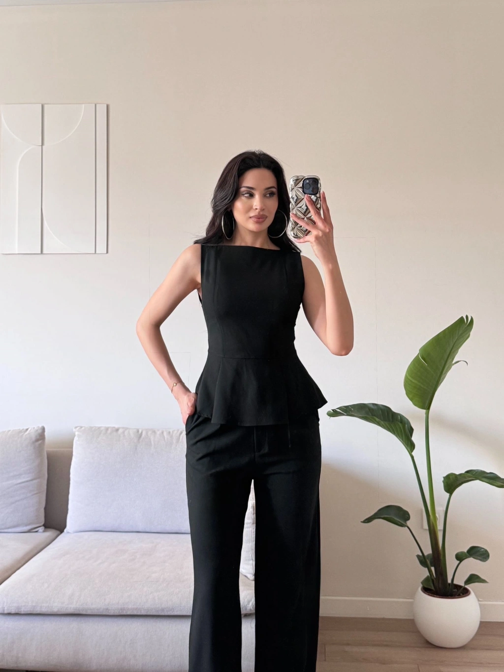 Sıfır Kol Belden Oturtmalı Takım - SİYAH