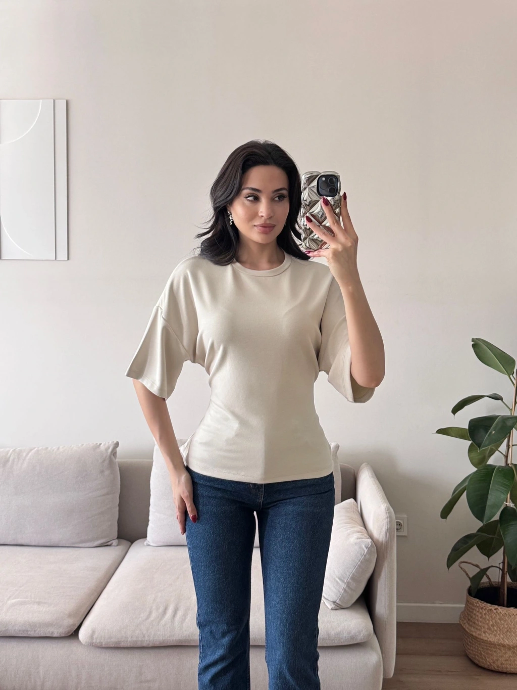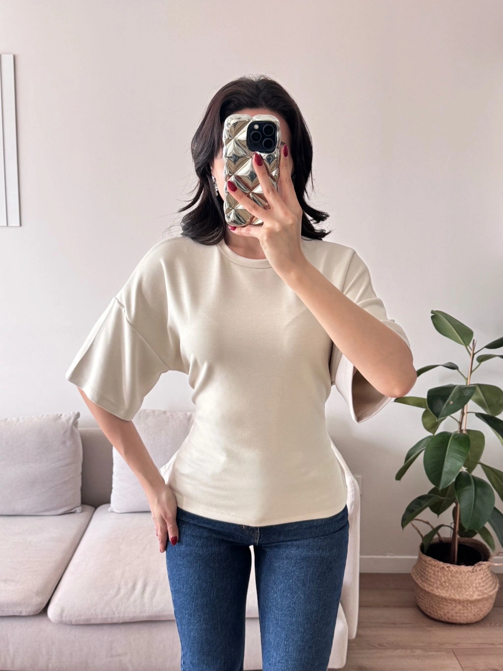 Sırt Bağcıklı Oversize Tshirt - BEJ