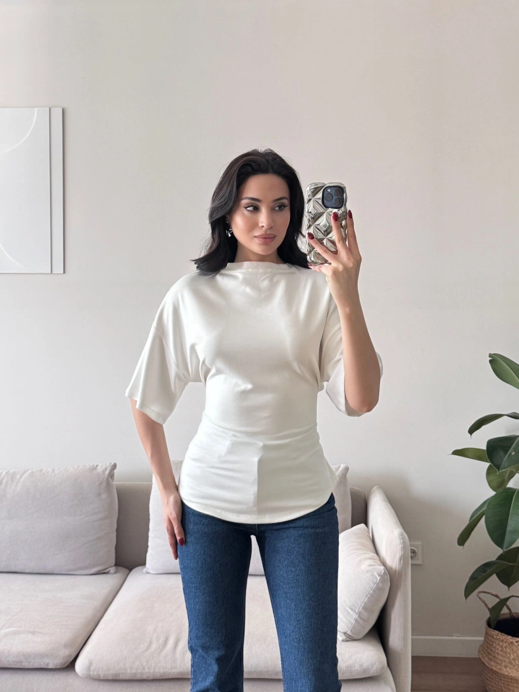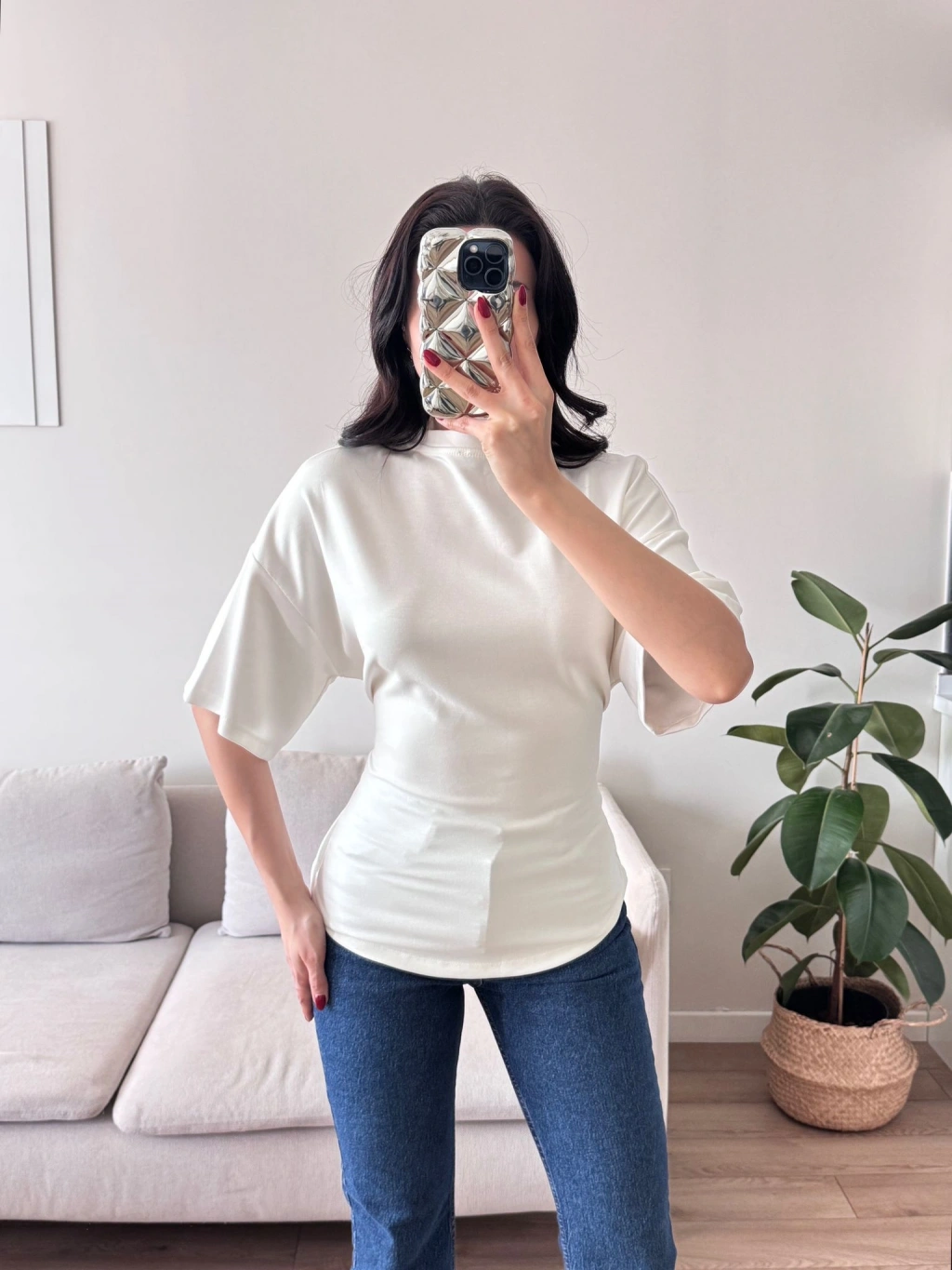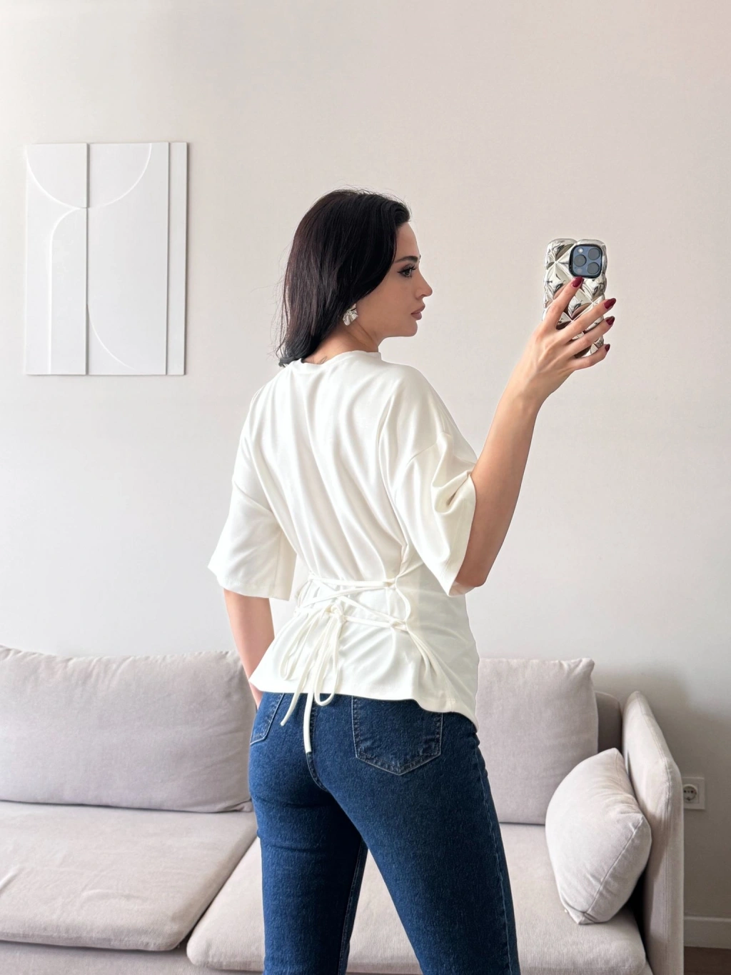 Sırt Bağcıklı Oversize Tshirt - BEYAZ