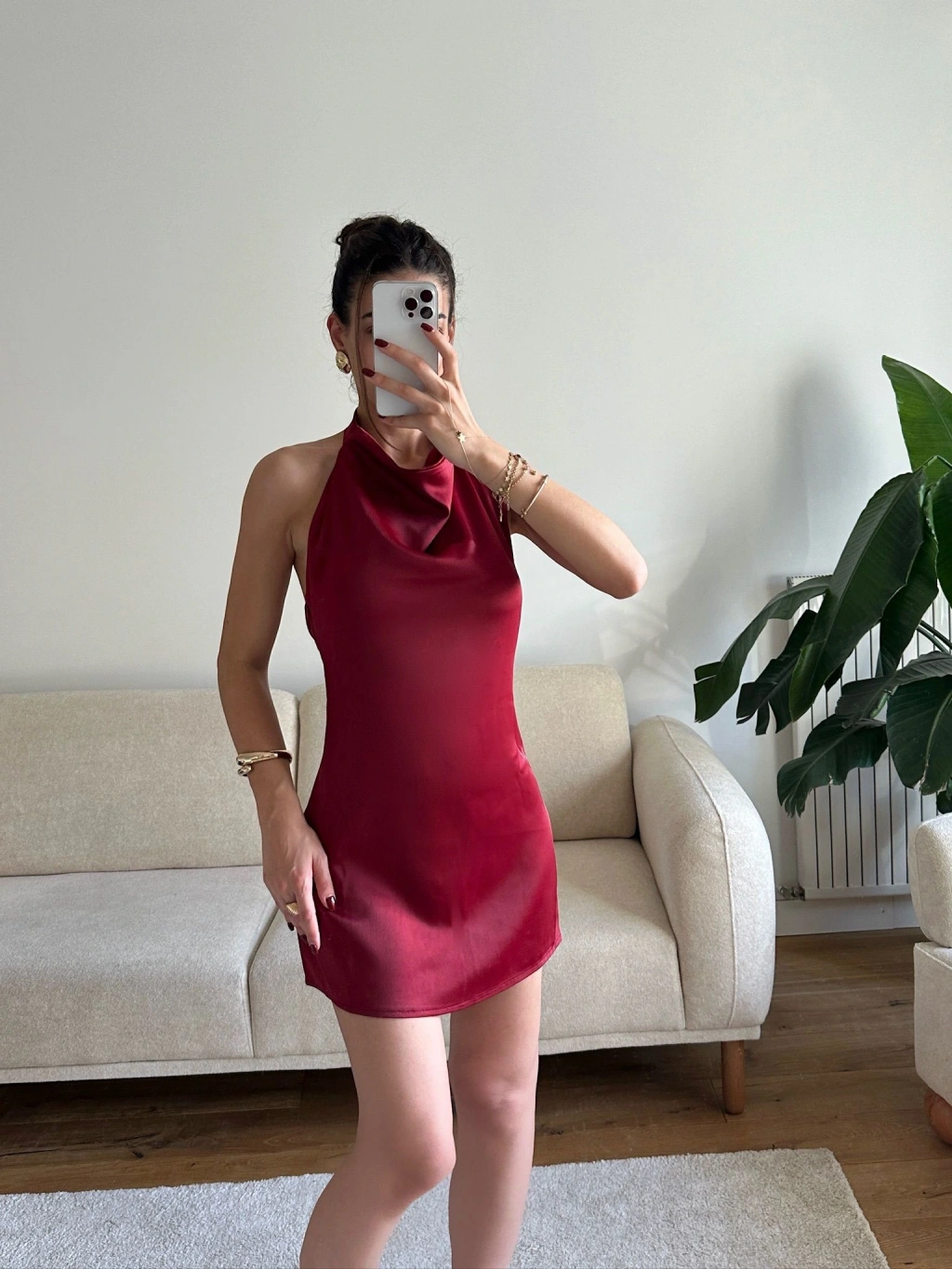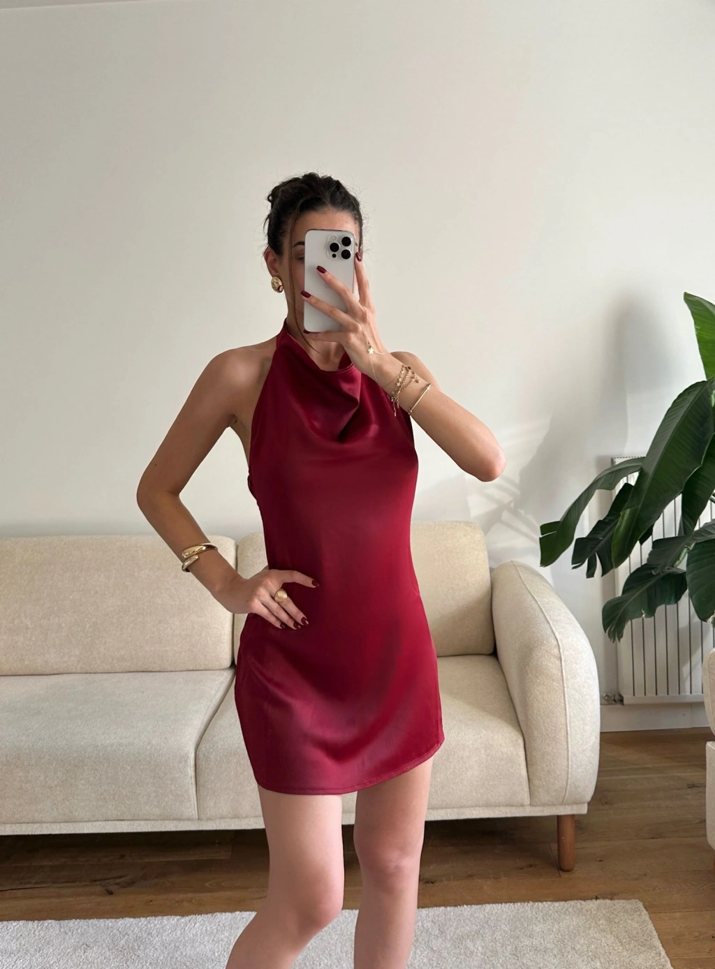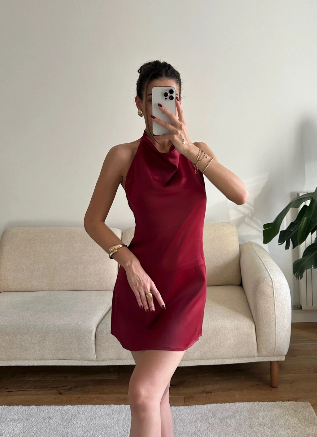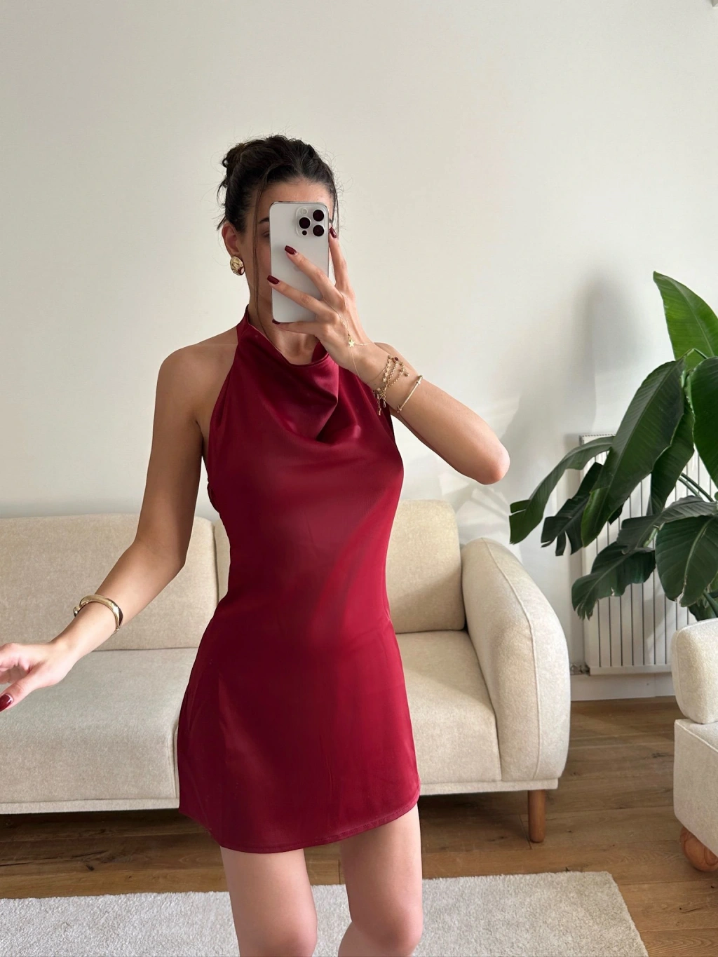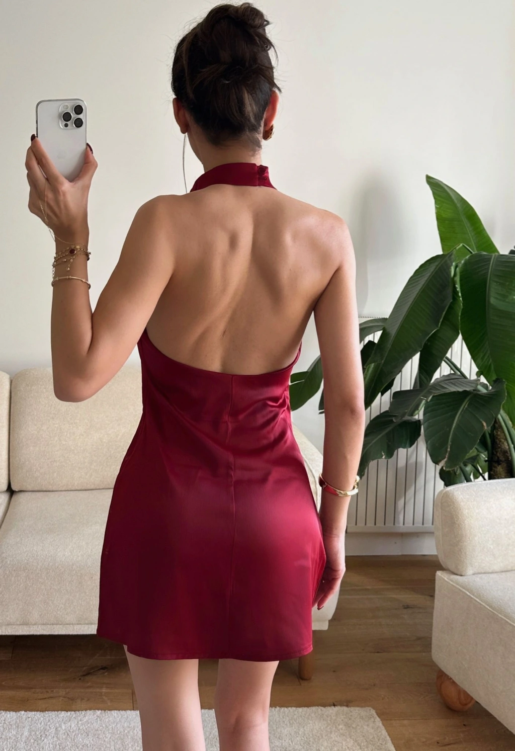 Sırt Dekolte Boyun Geçmeli Elbise - BORDO