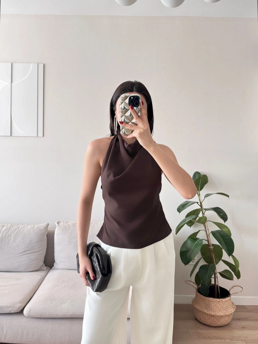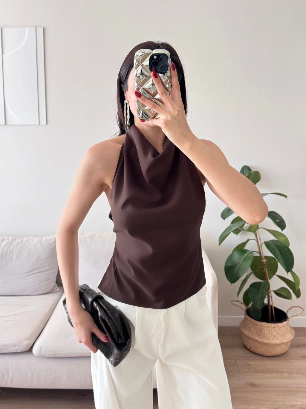 Sırt Dekolte Degaje Bluz - KAHVE