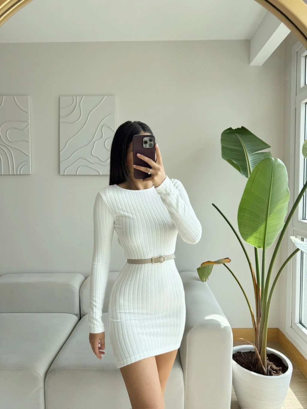 Sırt Dekolte Fitilli Elbise - BEYAZ