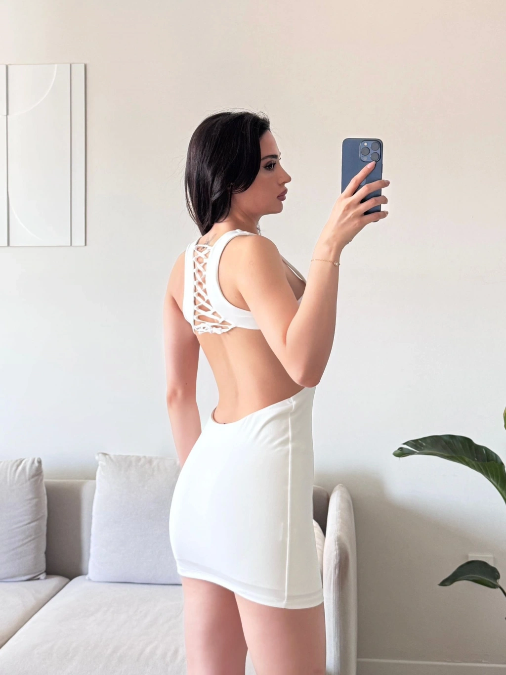 Sırt Dekolte Tasarım Elbise - BEYAZ