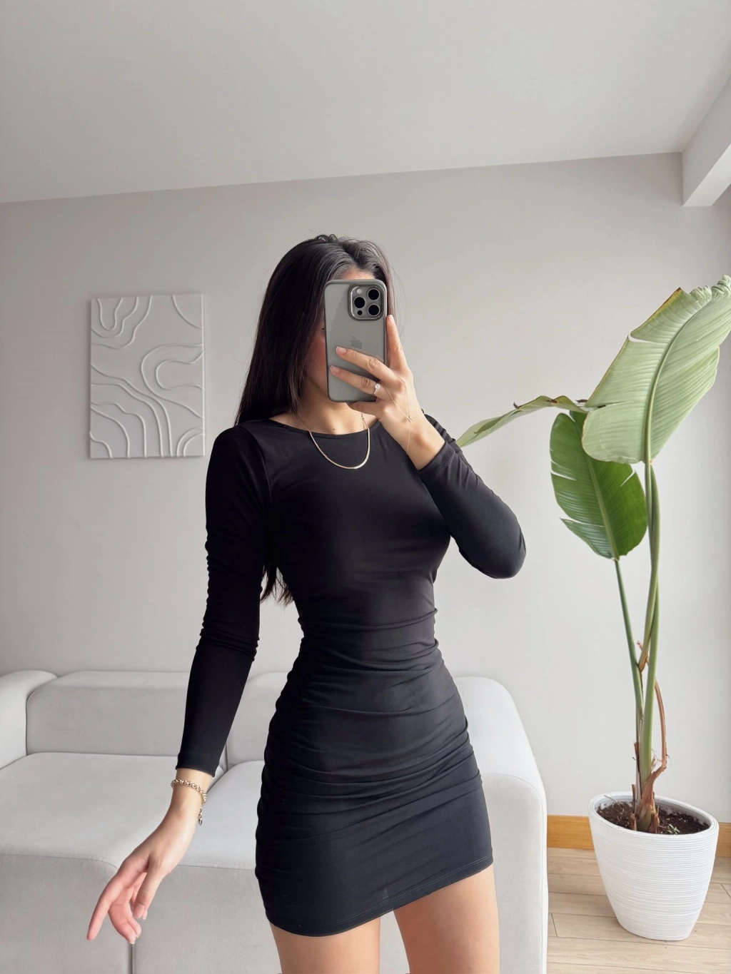 Sırt Degaje Zincir Elbise - SİYAH