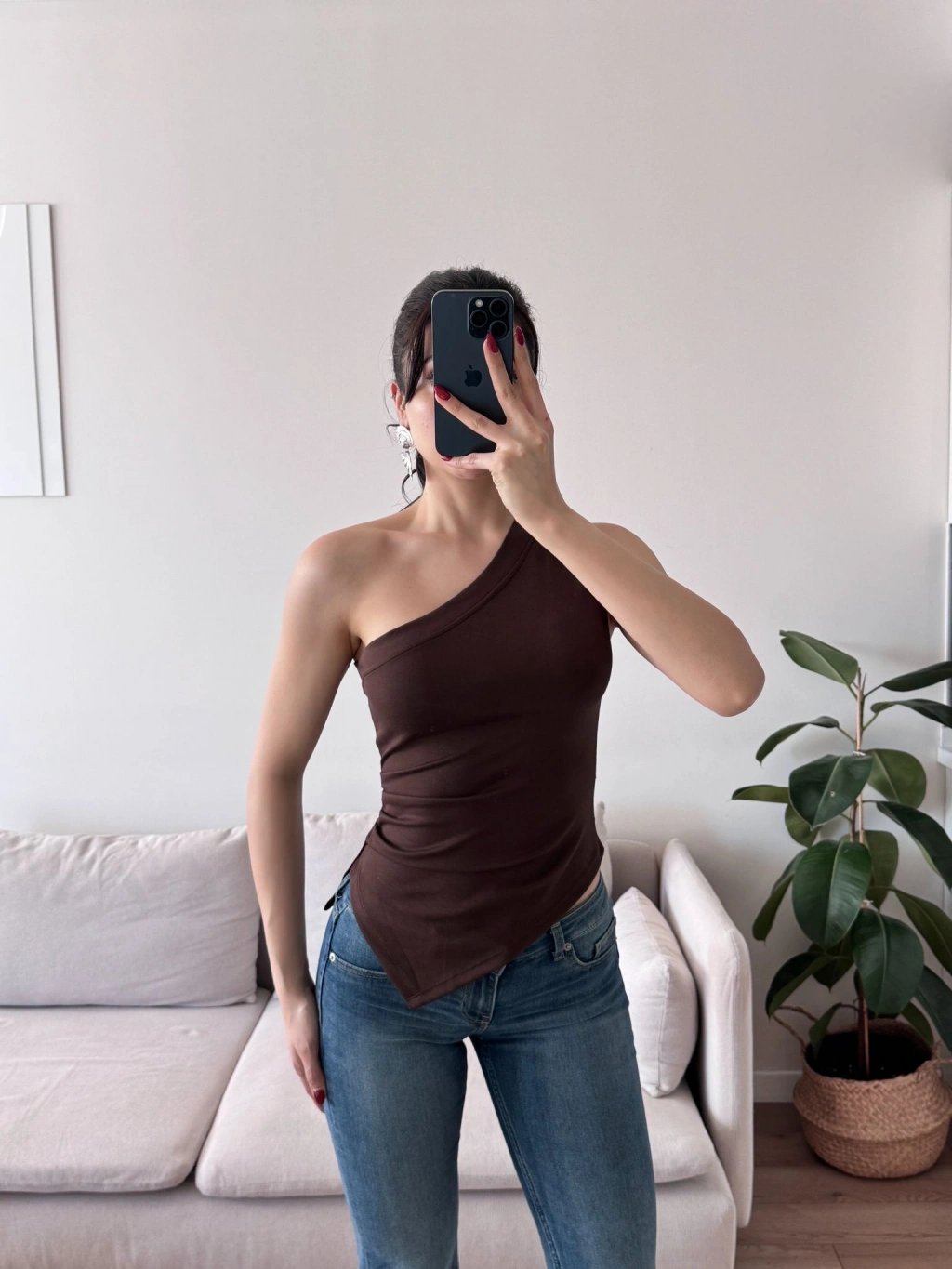 Tek Omuz Asimetrik Bluz - KAHVE