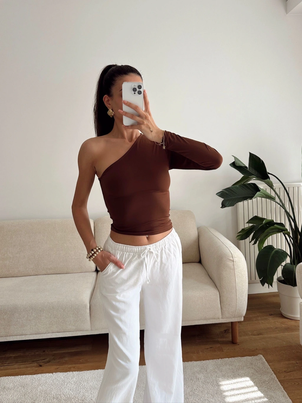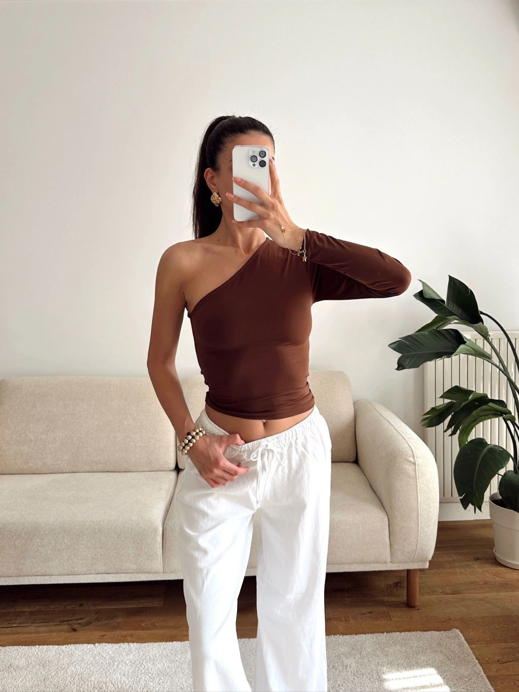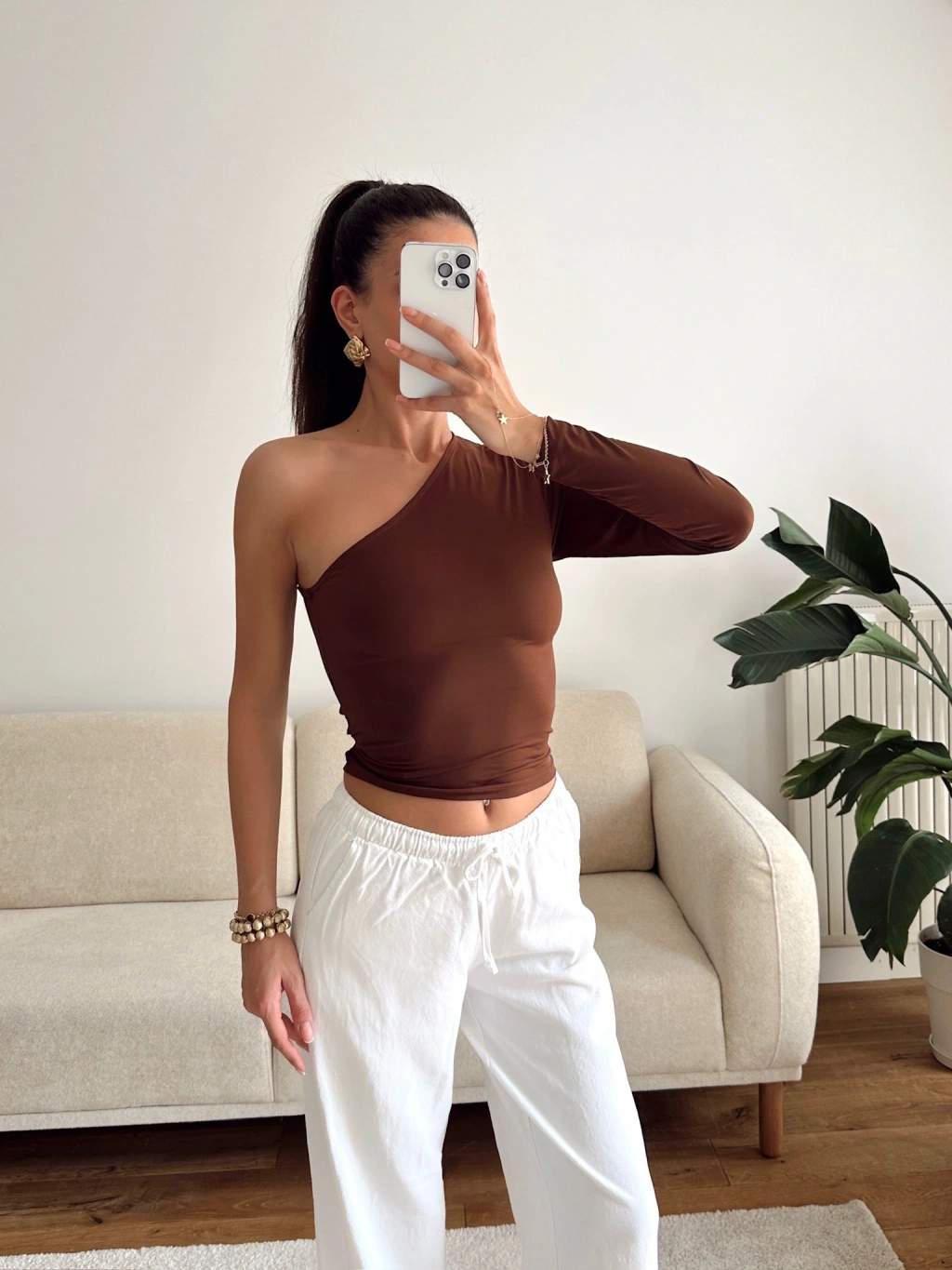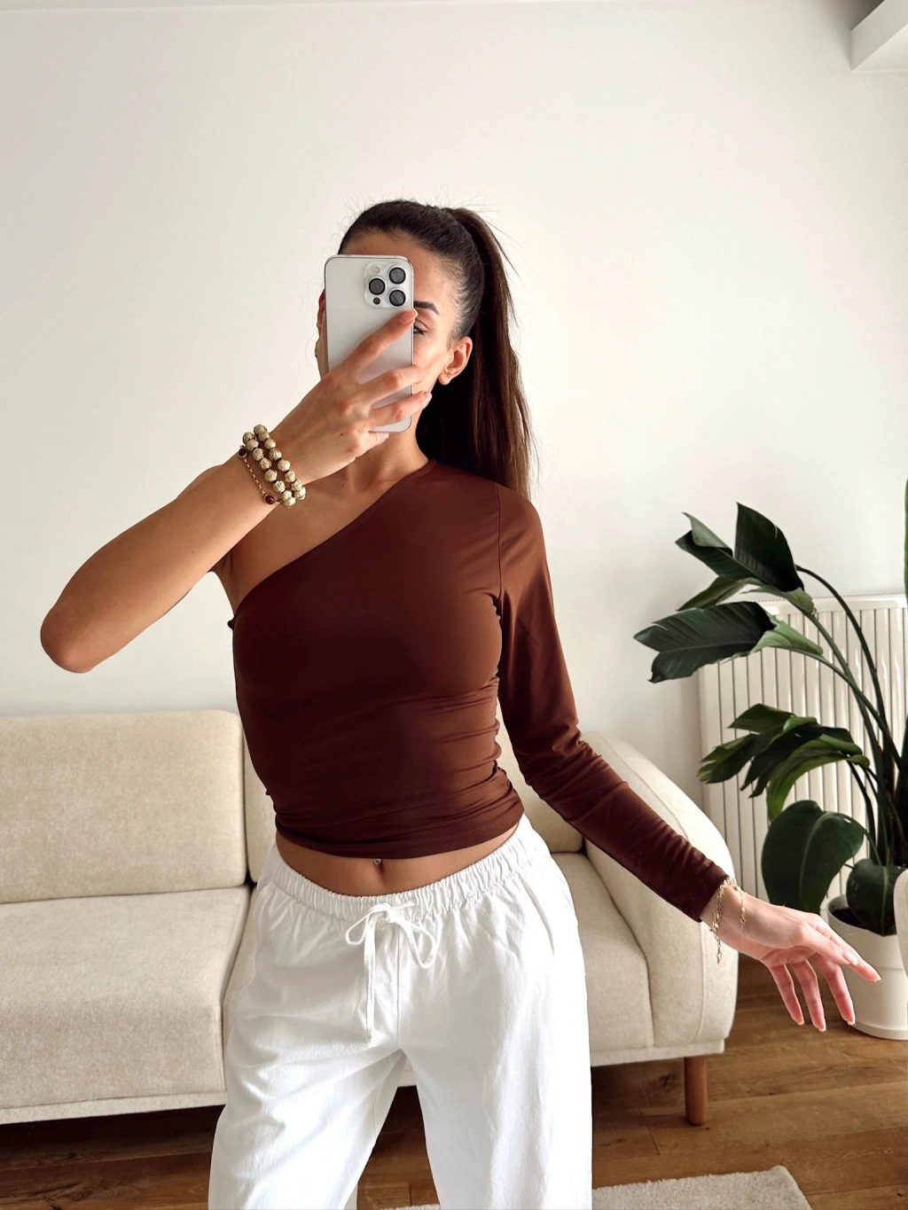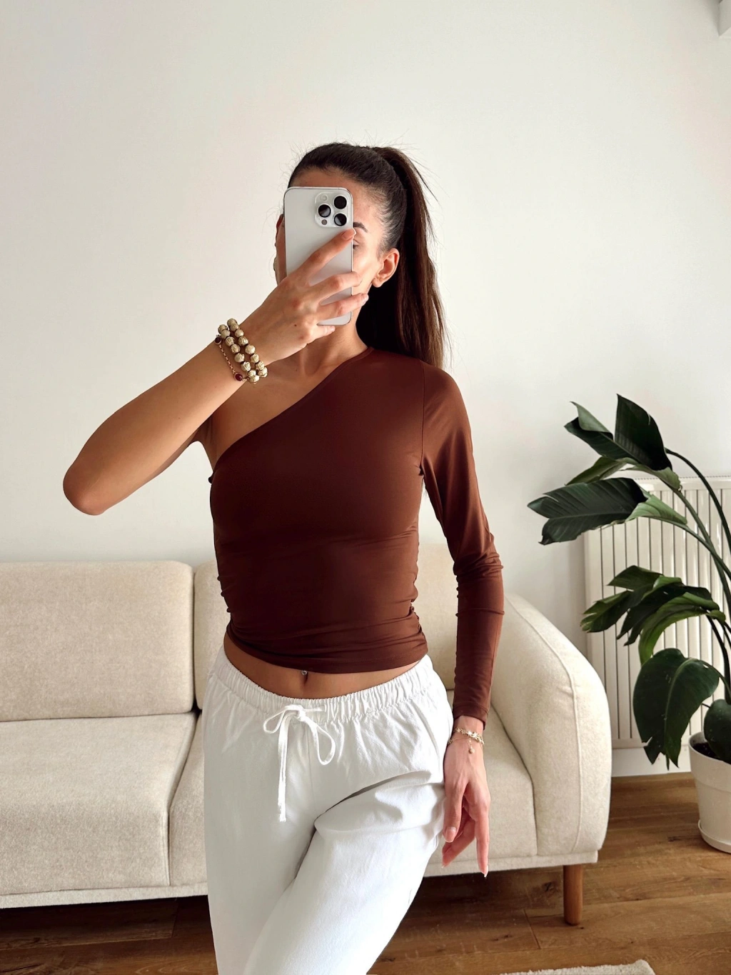 Tek Omuz Kuşaklı Crop - KAHVE