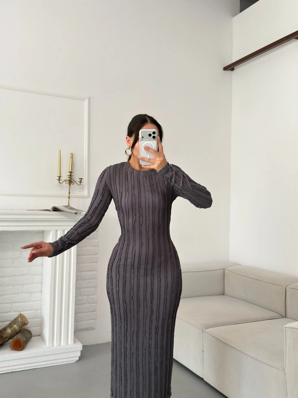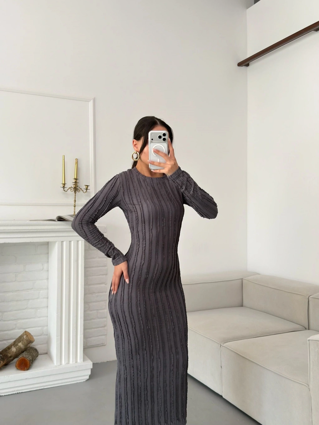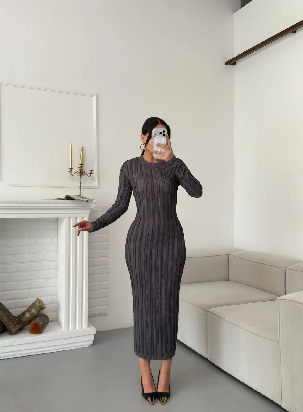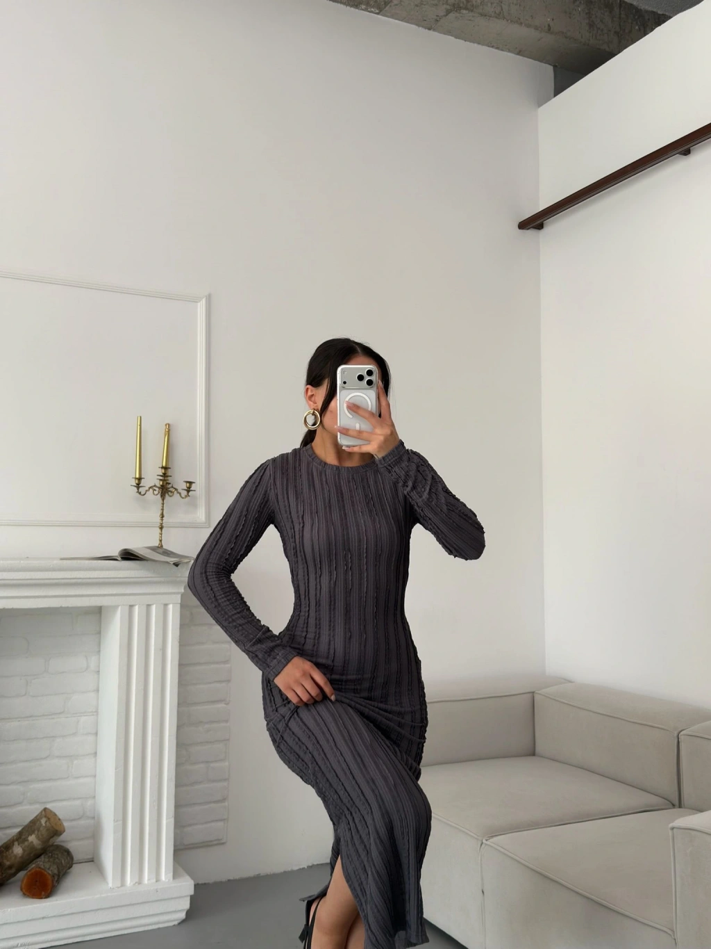 Ters Dikiş Yırtmaçlı Elbise - GRİ