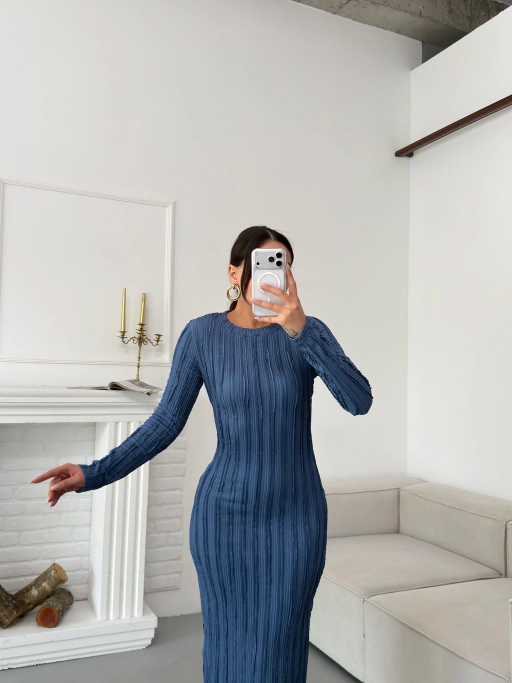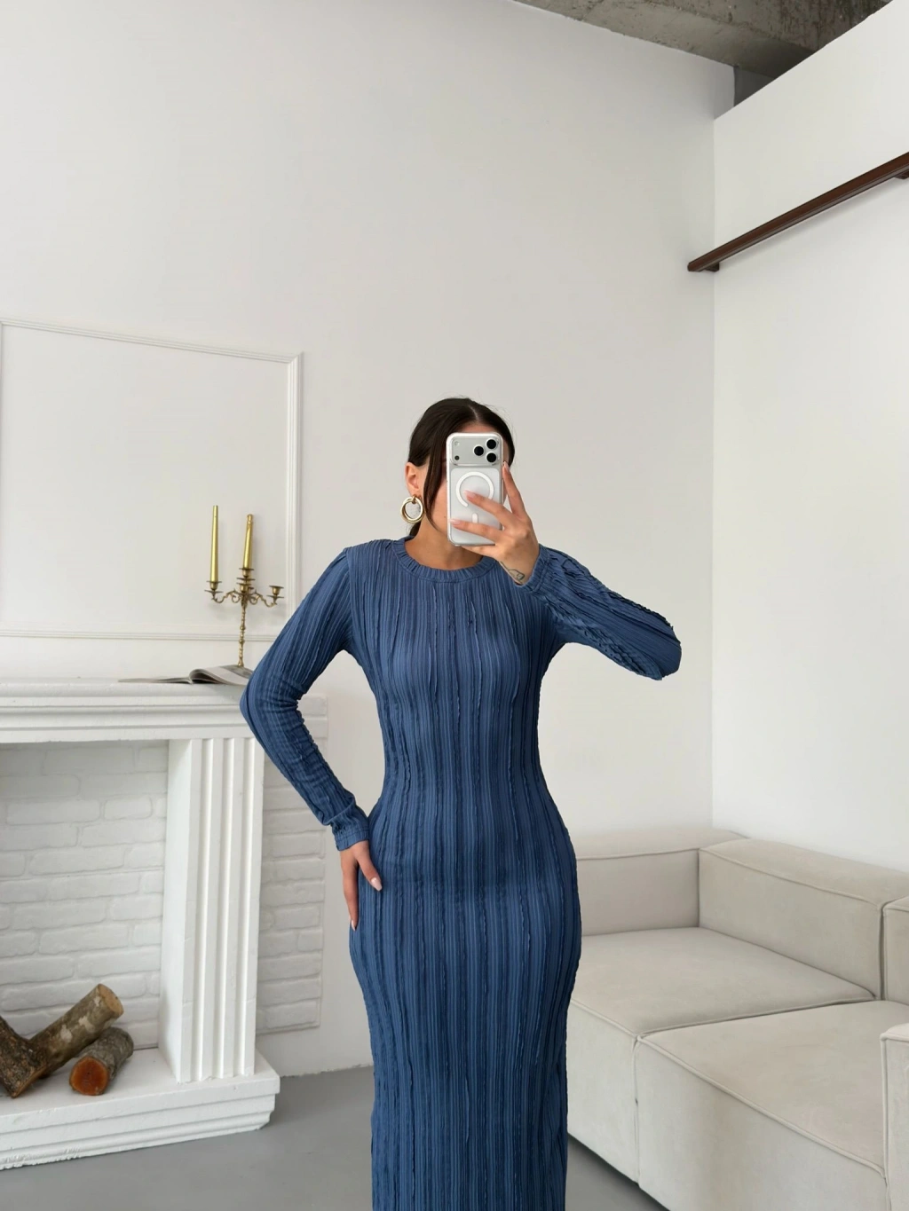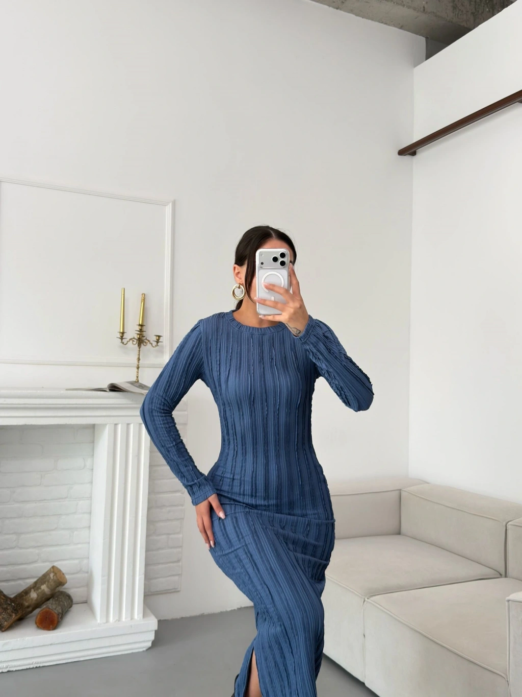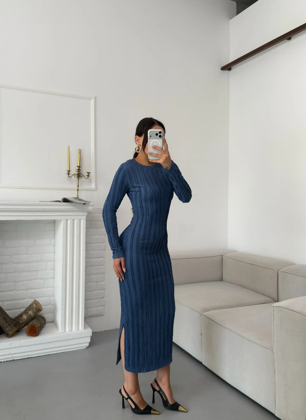 Ters Dikiş Yırtmaçlı Elbise - MAVİ