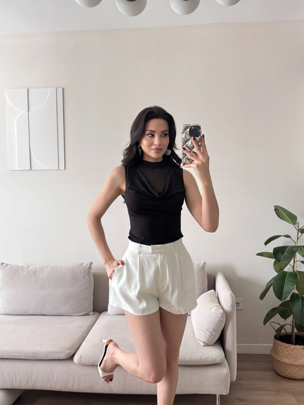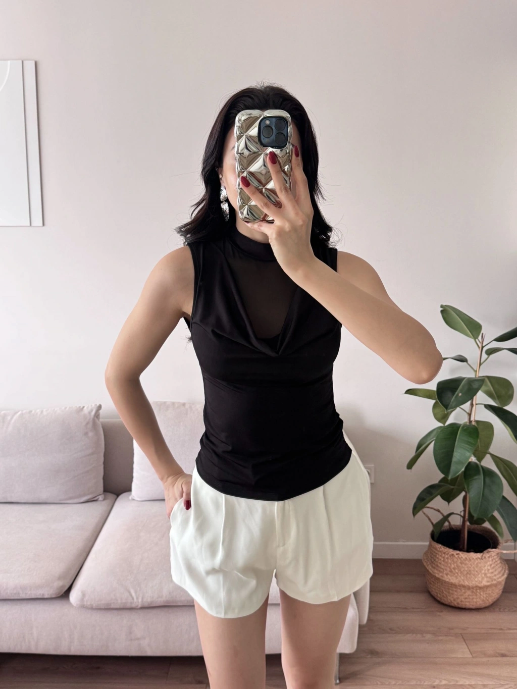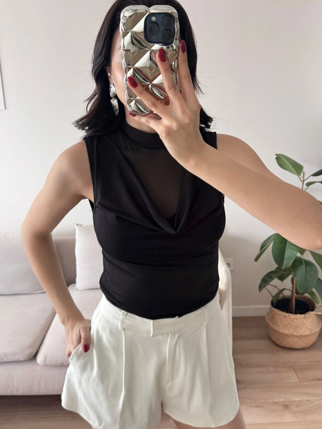 Tül Detay Degaje Crop - SİYAH