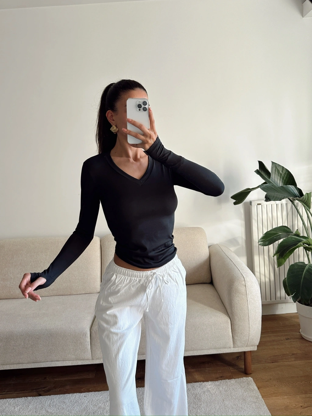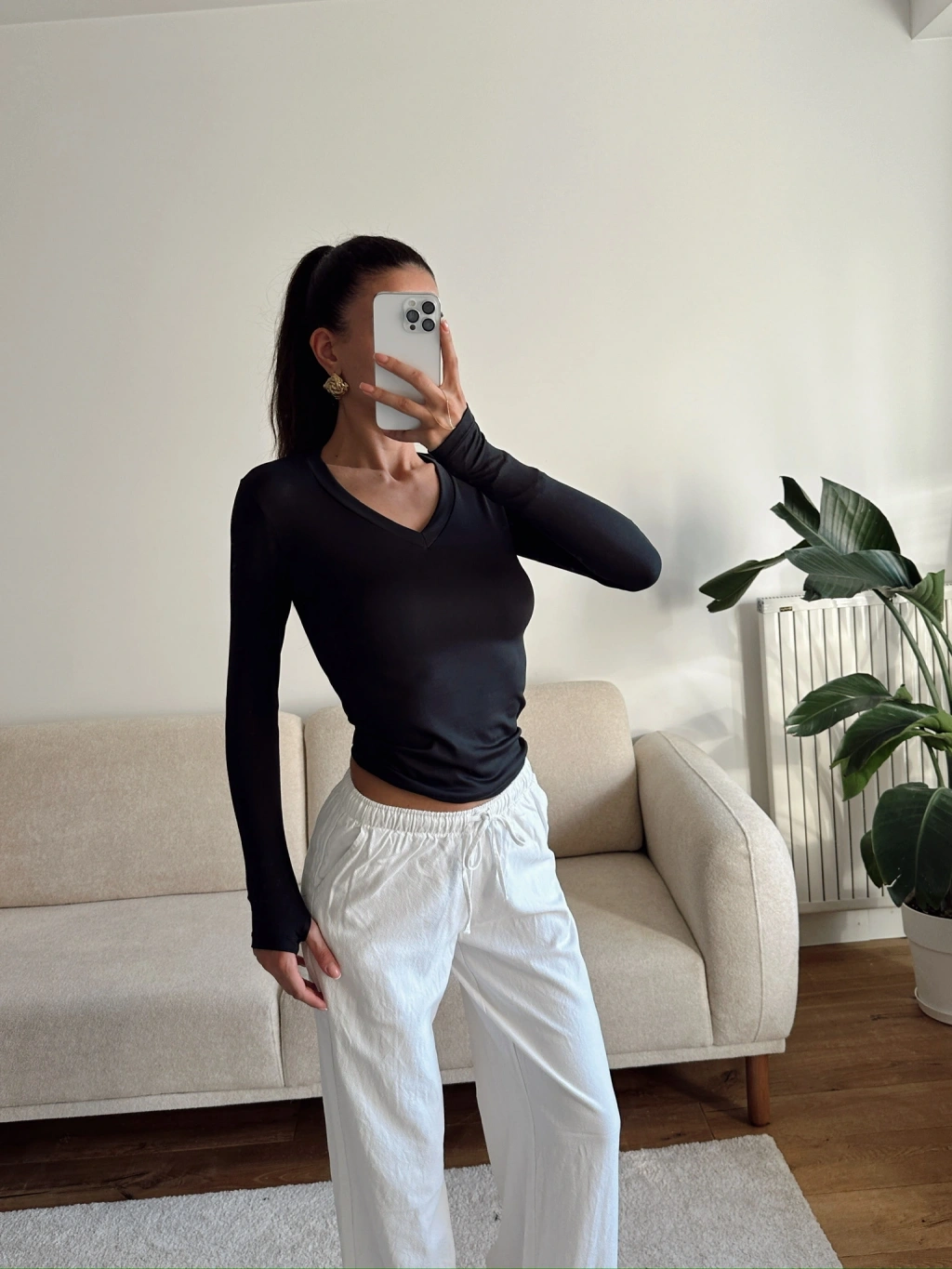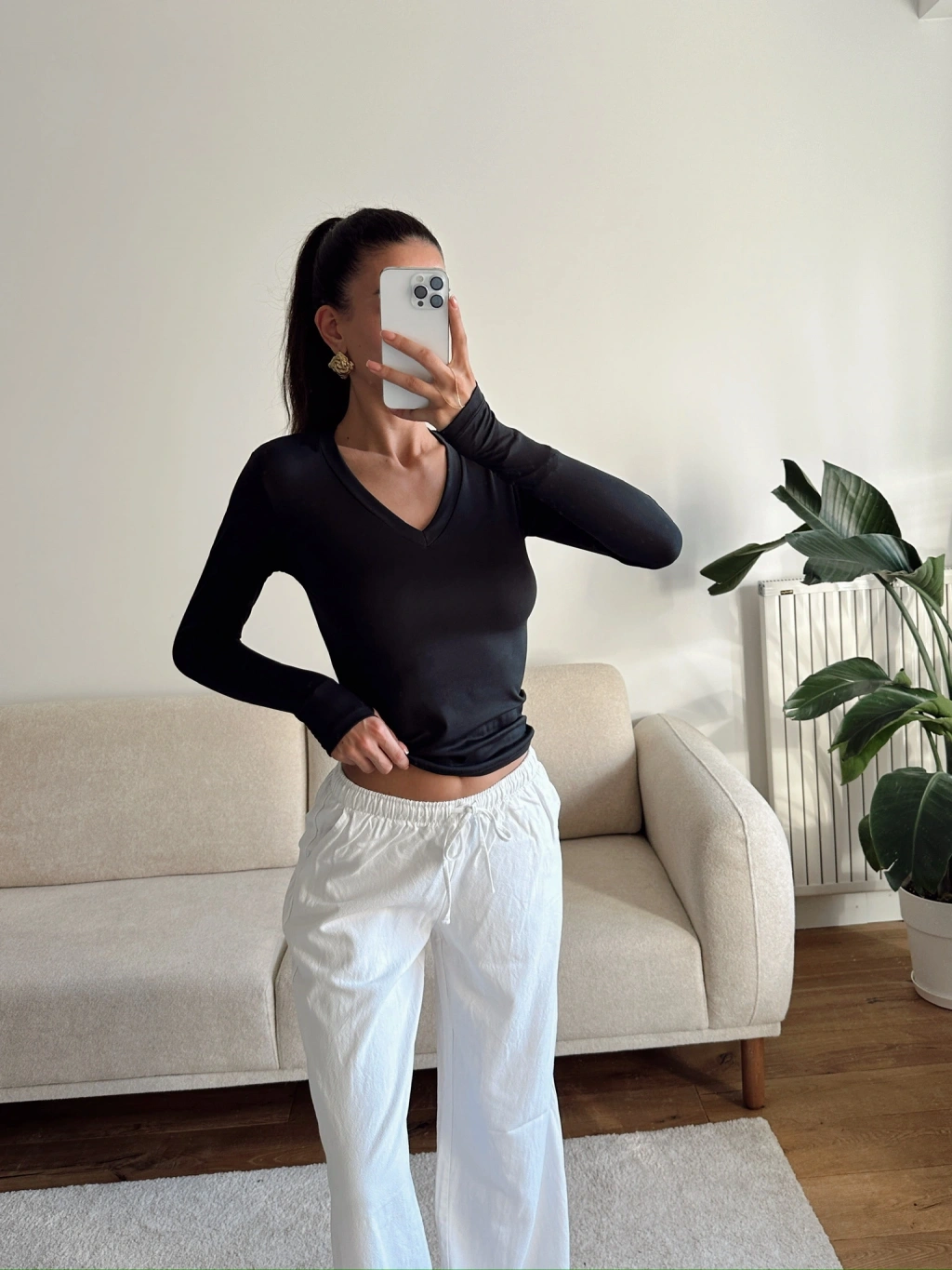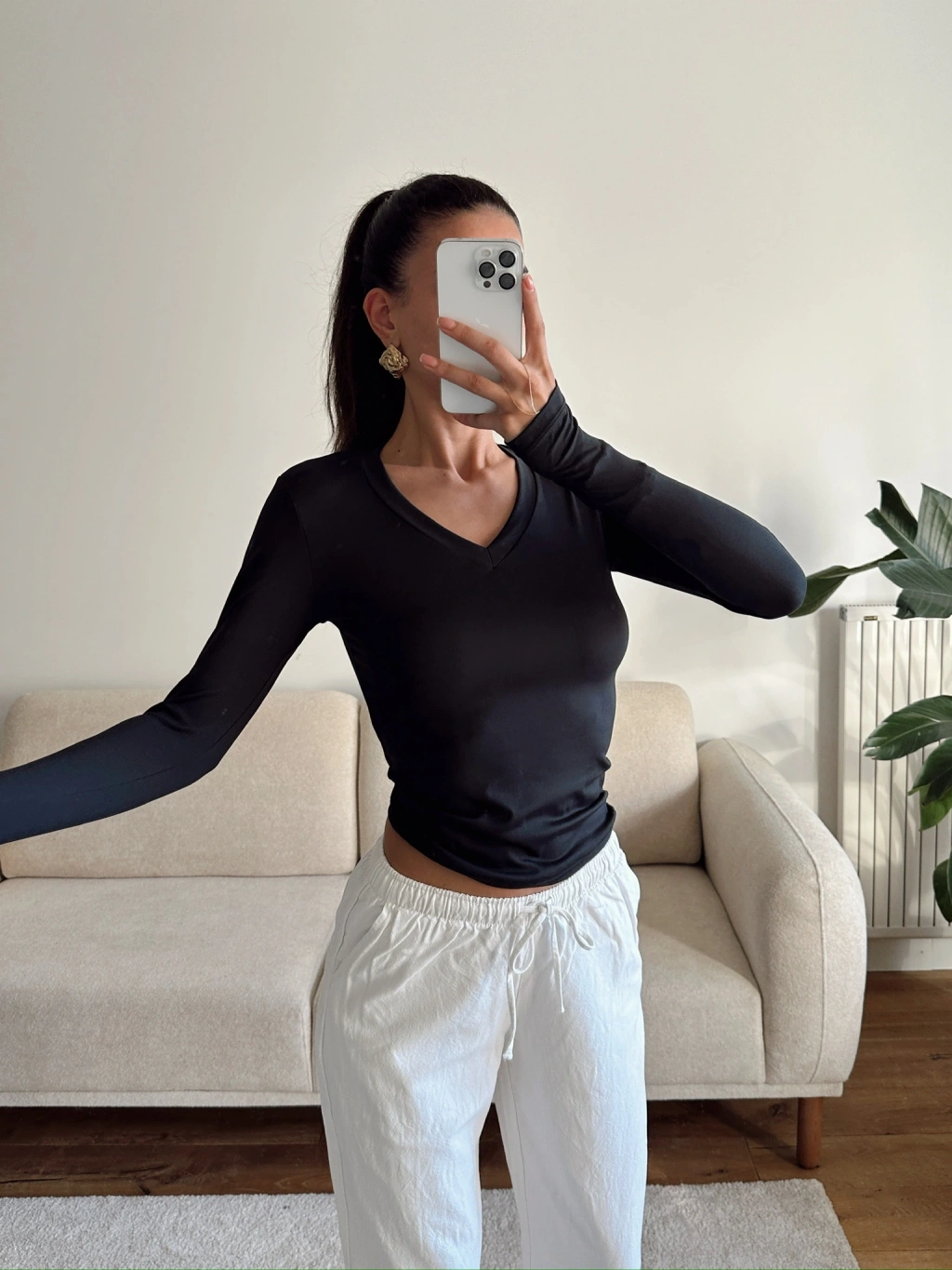 V Yaka Belize Kumaş Crop - SİYAH