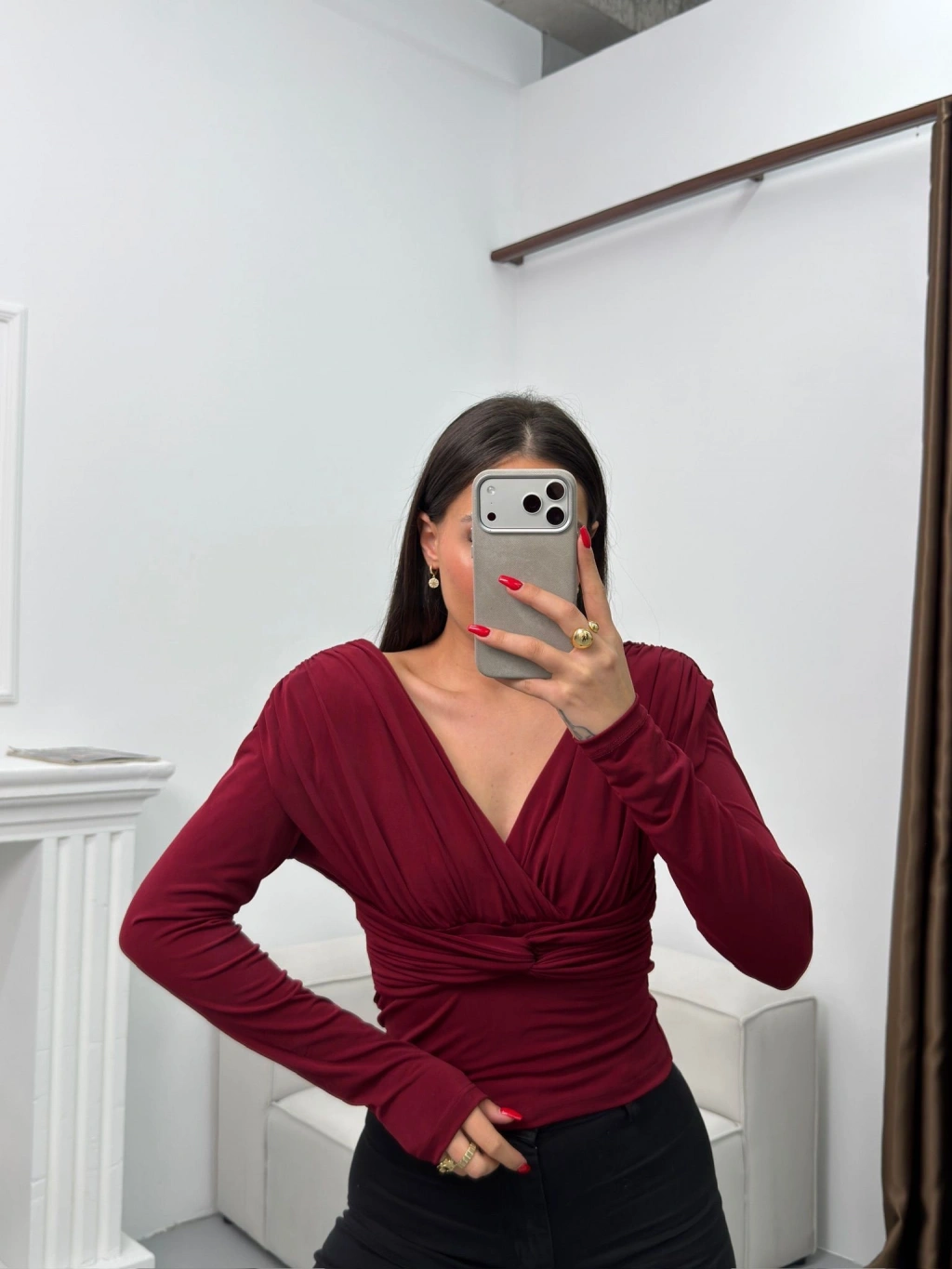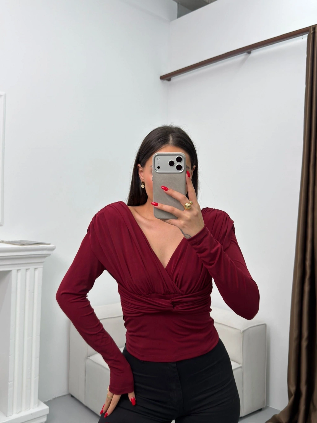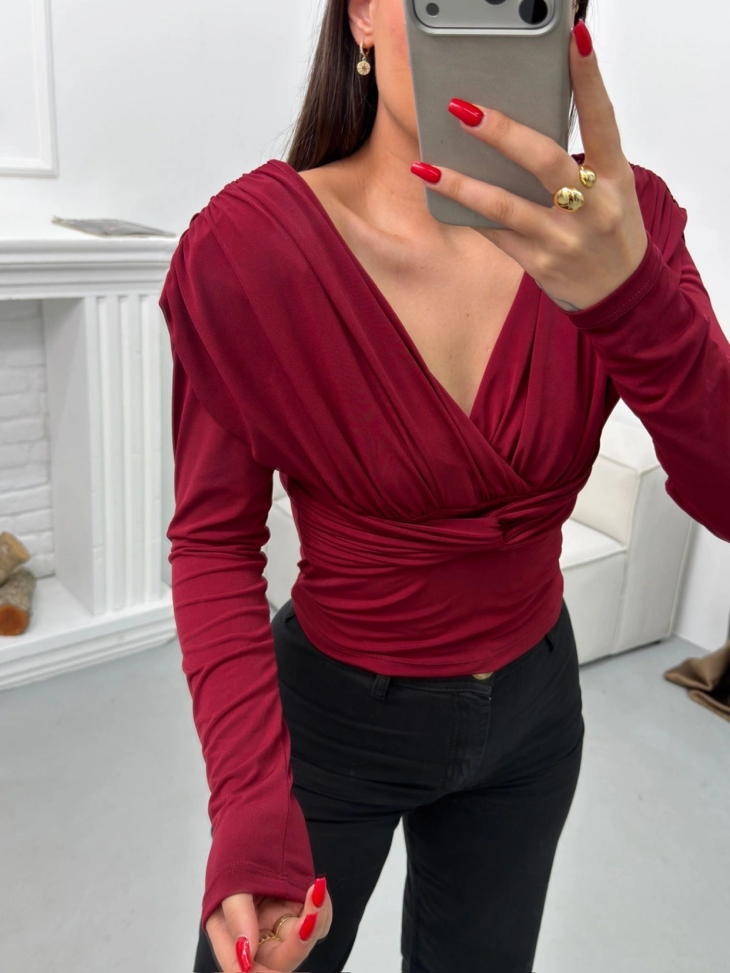 Vatkalı Drapeli Bluz - BORDO
