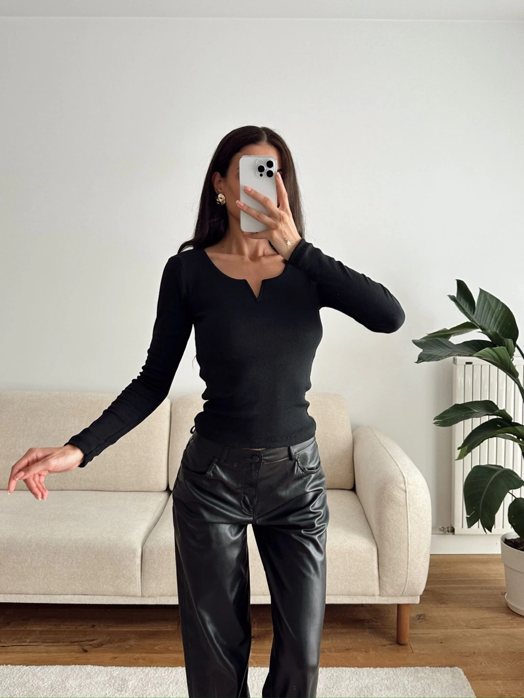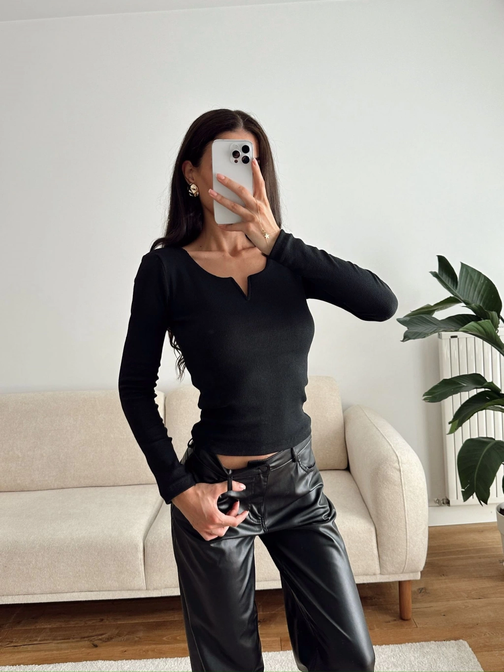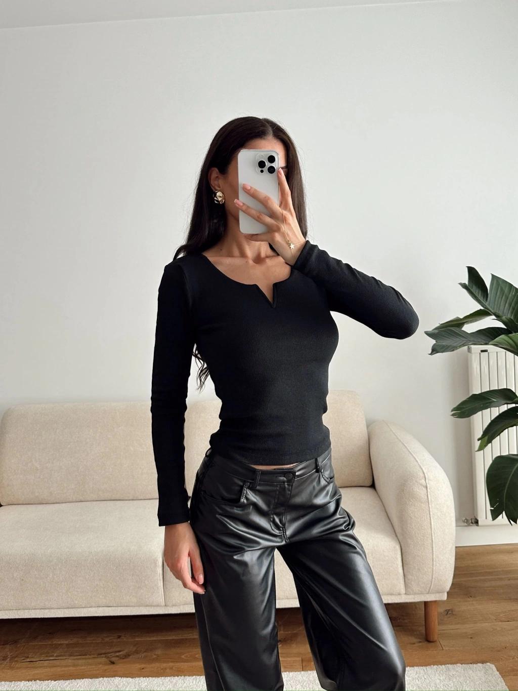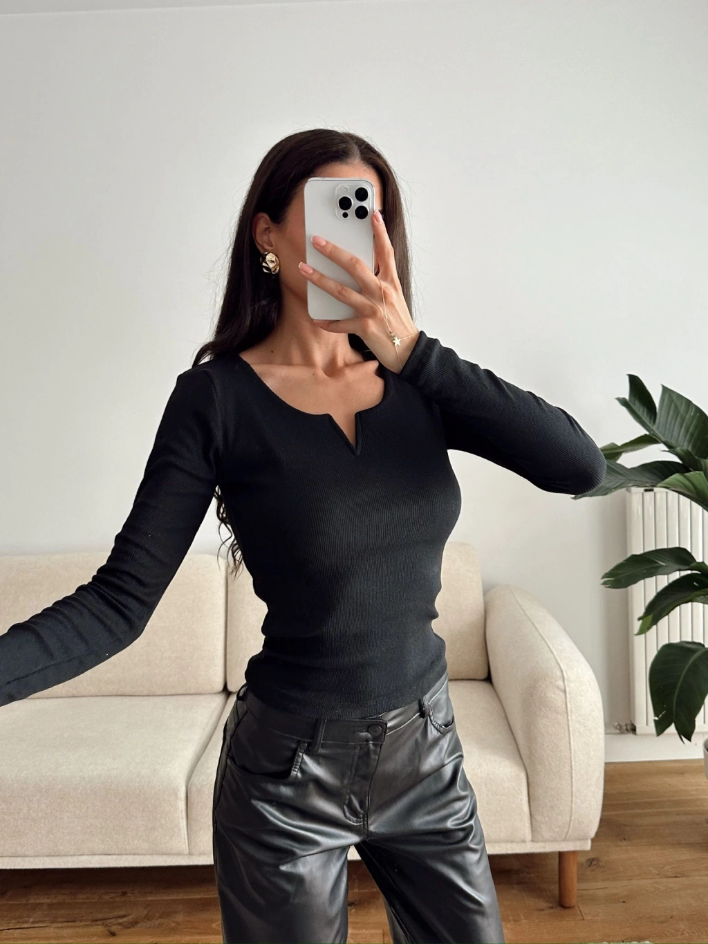 Yaka V Kesik Bluz - SİYAH