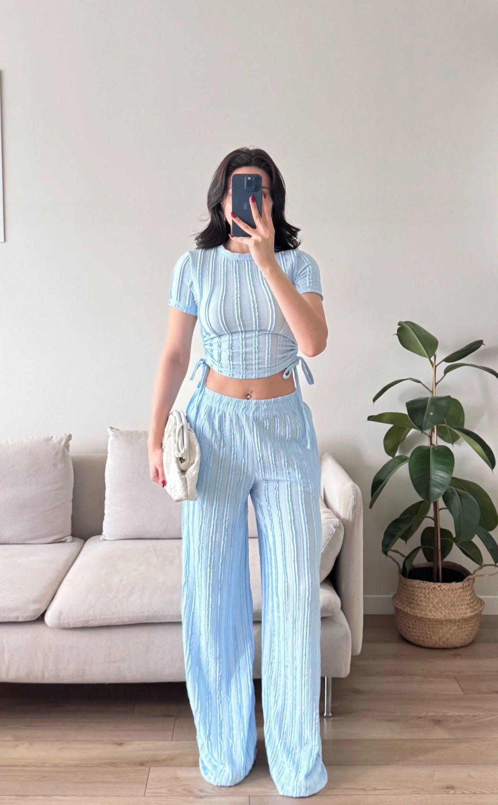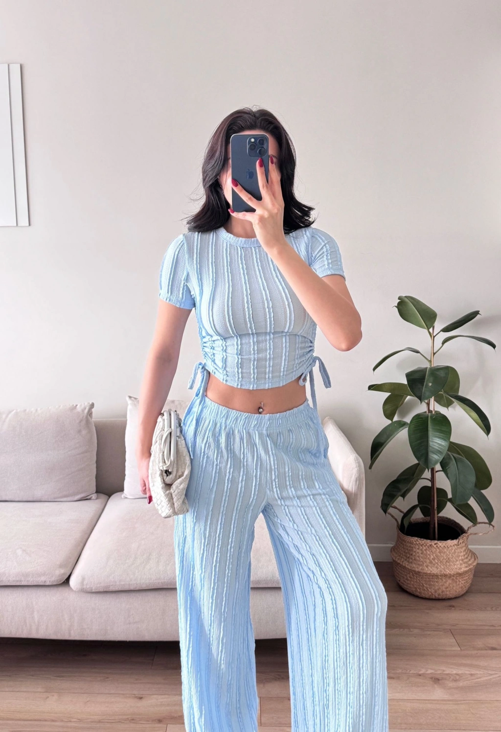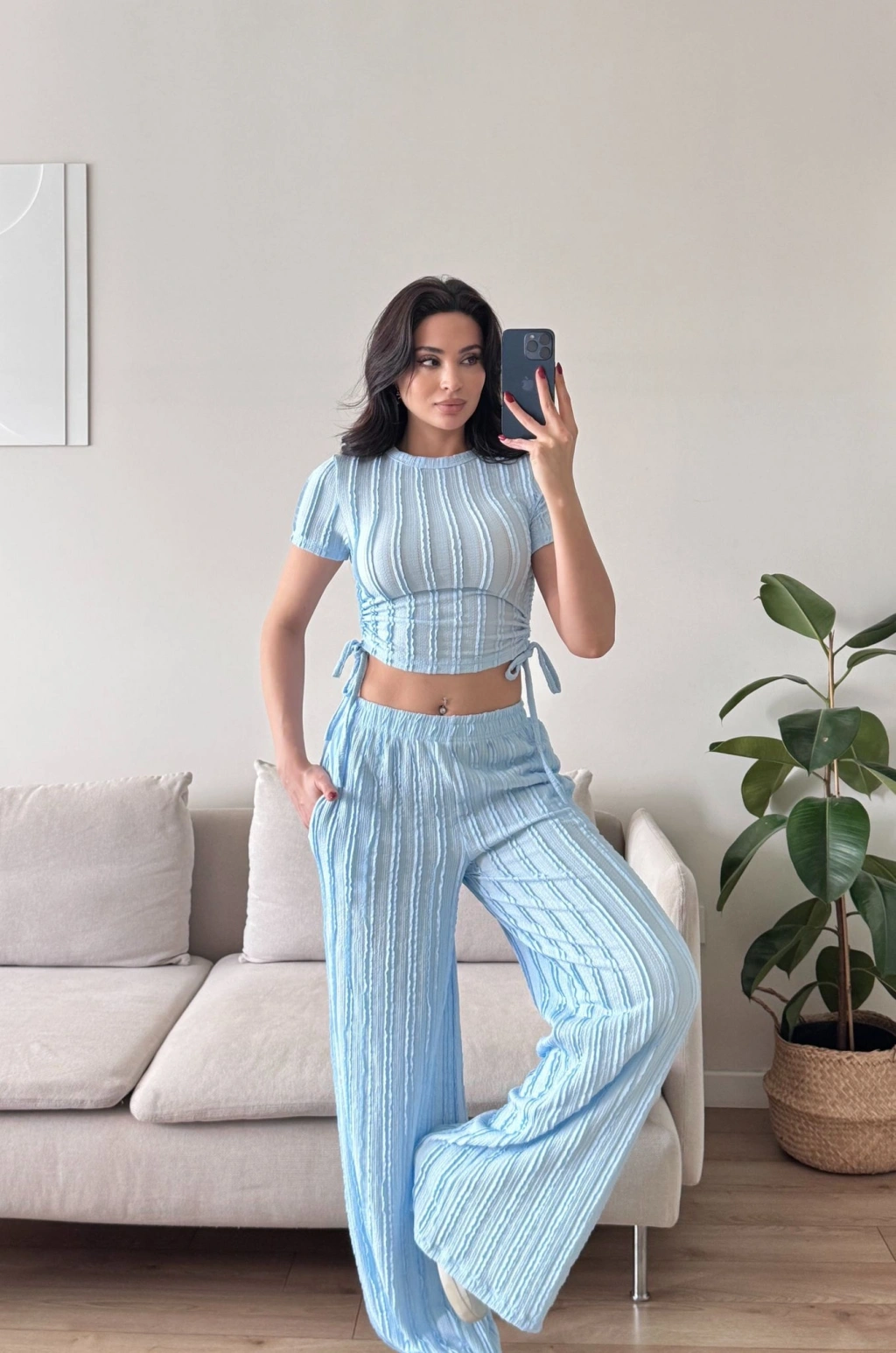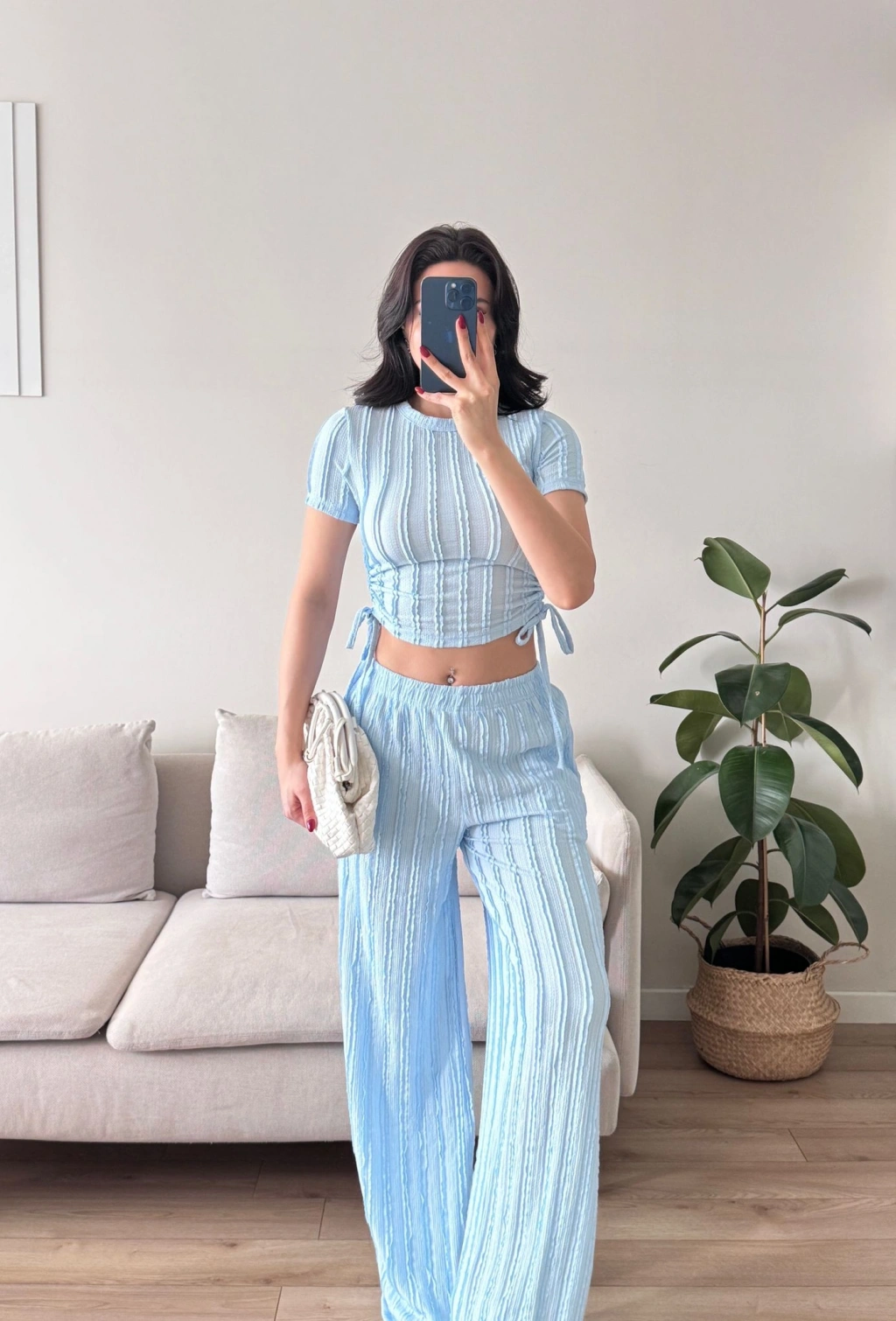 Yan Büzgü Pantolon Takım - BEBE MAVİSİ