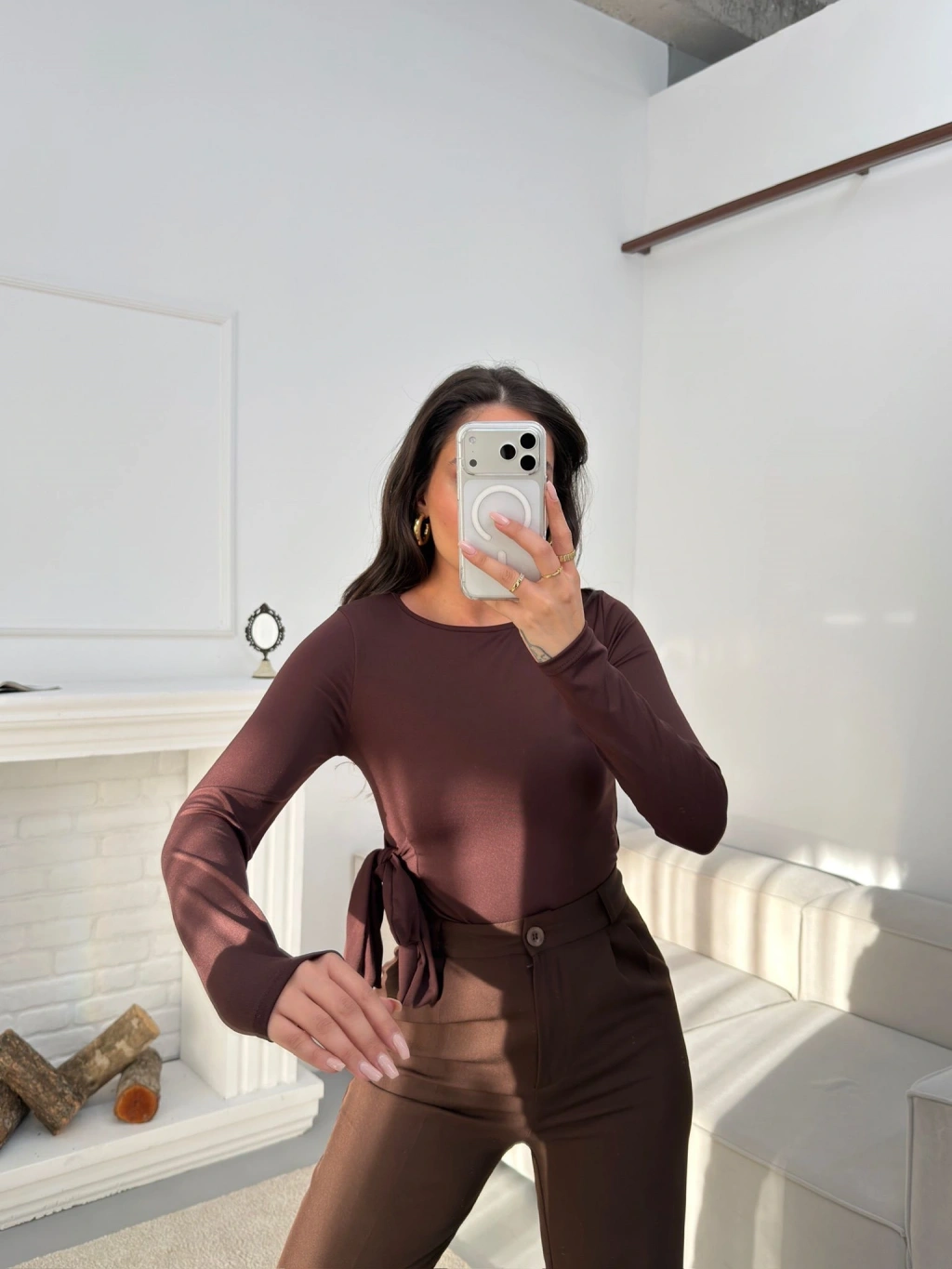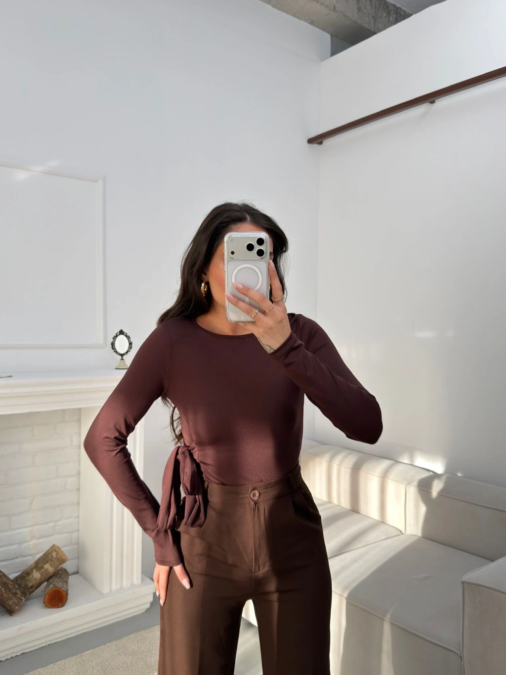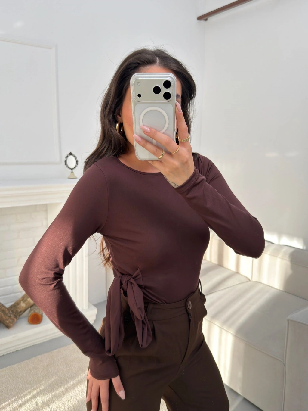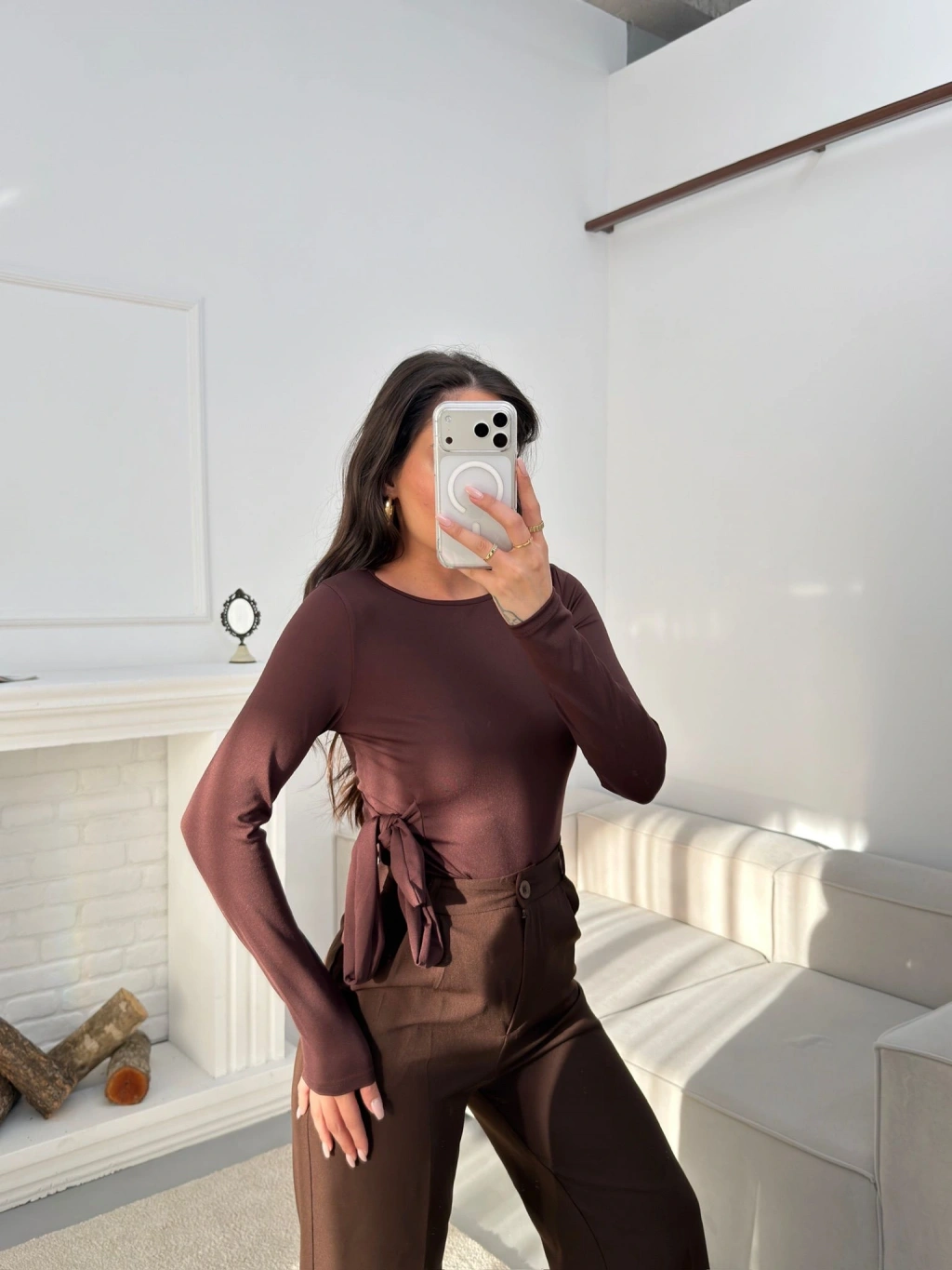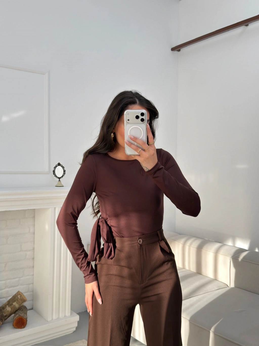 Yan Kuşak Detay Bluz - KAHVE