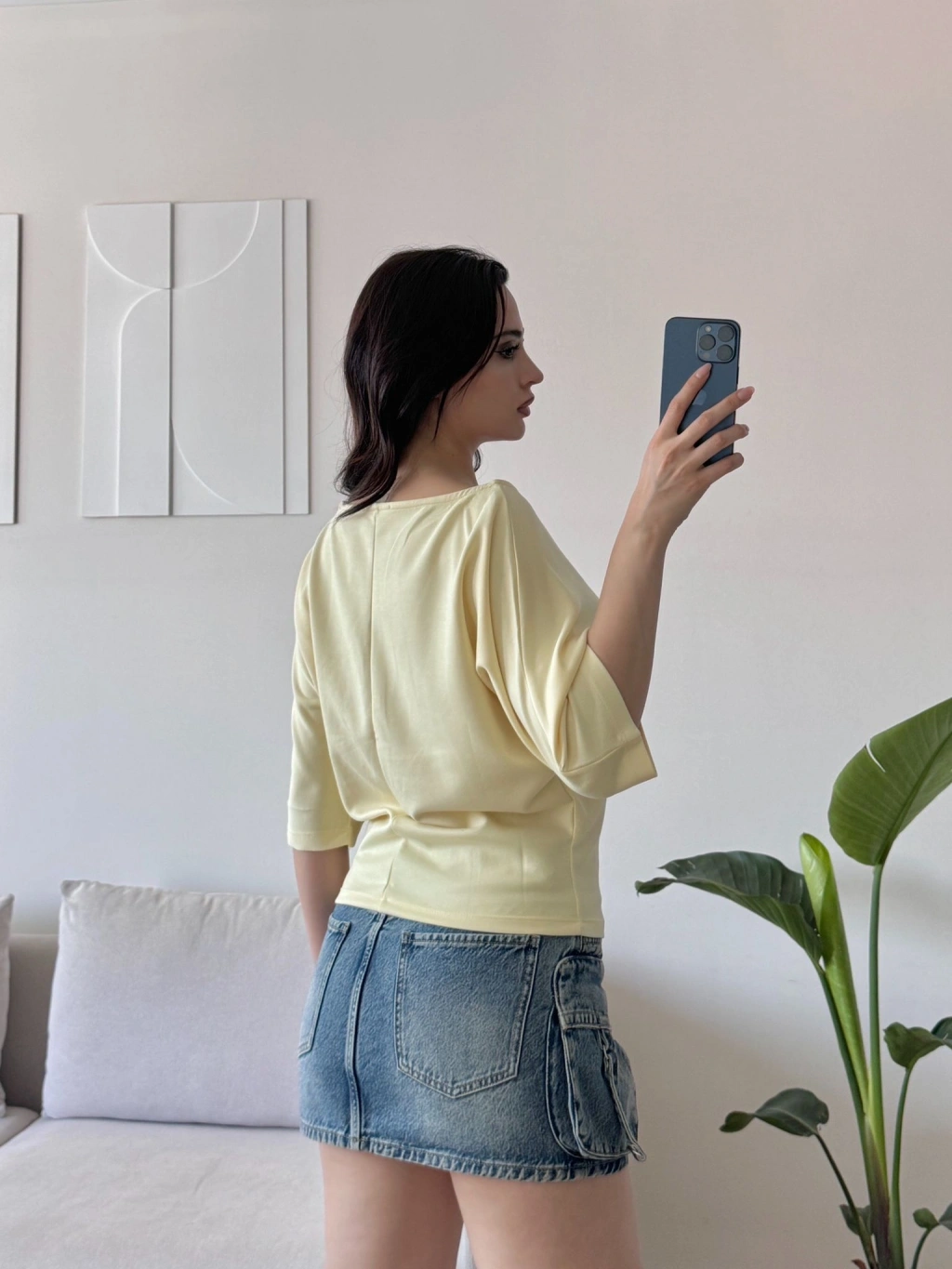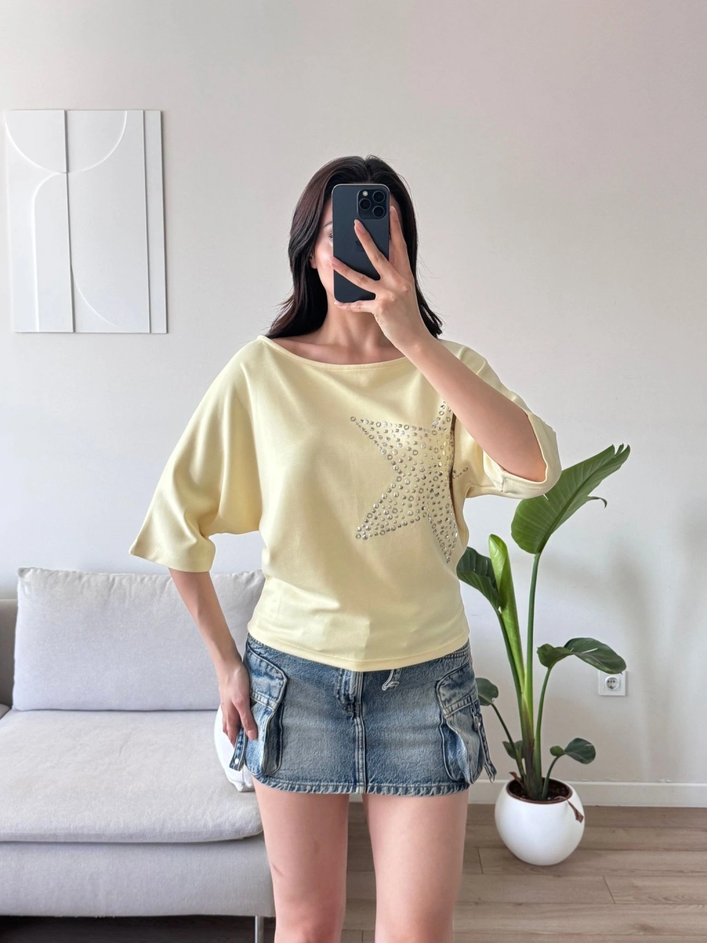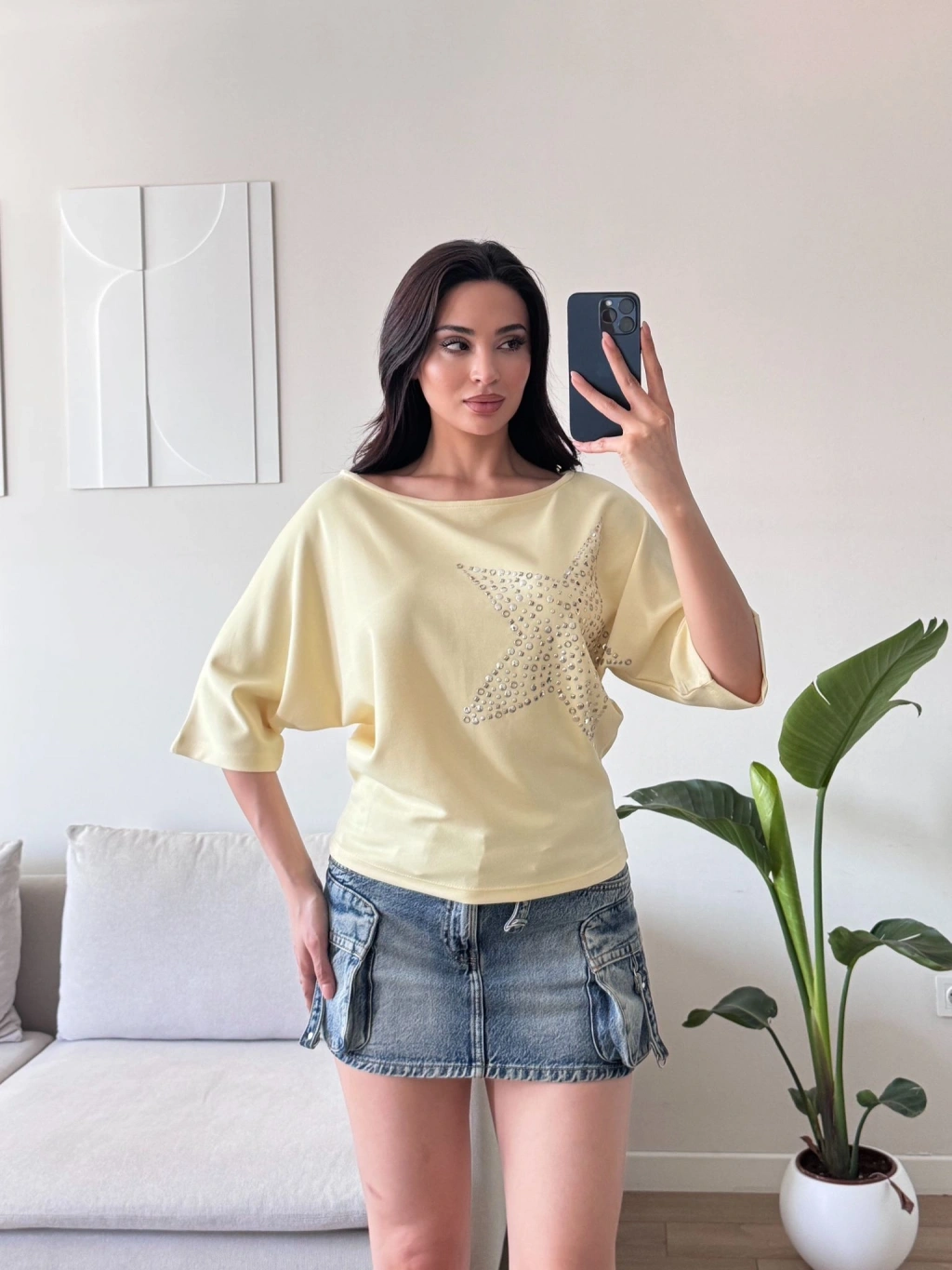Yıldız Detay Kayık Yaka Bluz - SARI