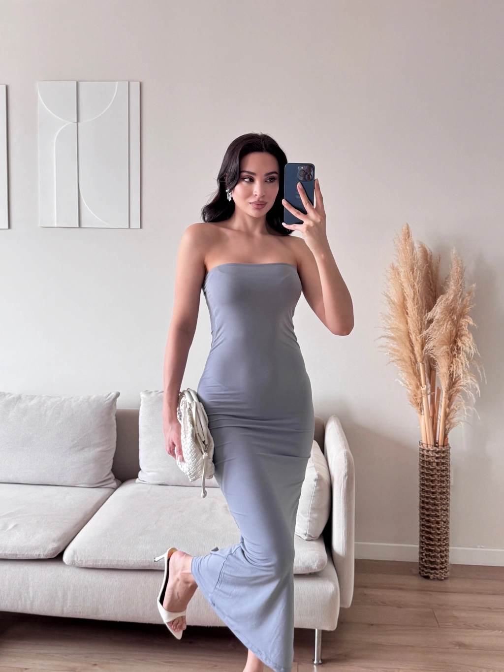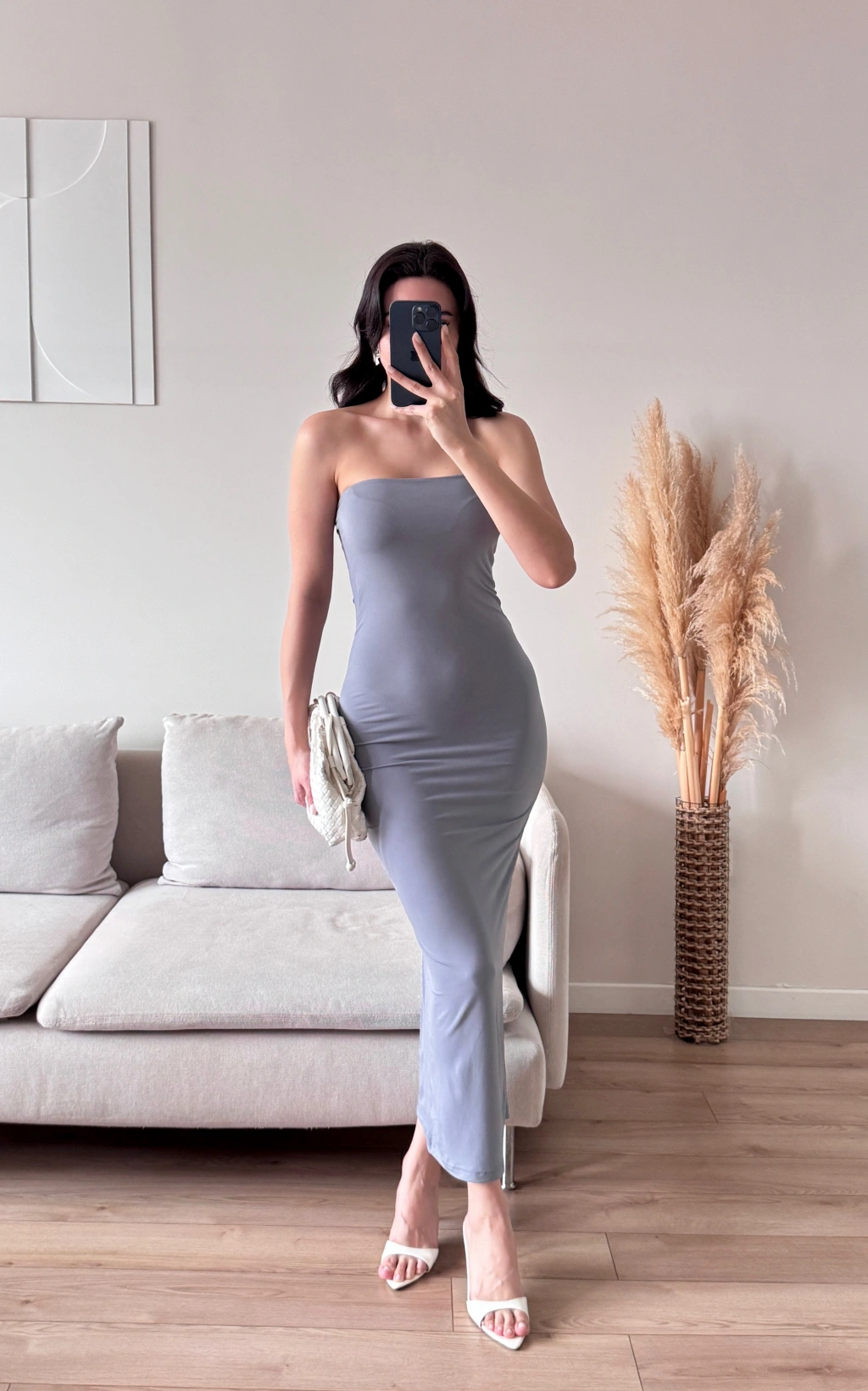 Yırtmaç Detay Steaplez Elbise - GRİ